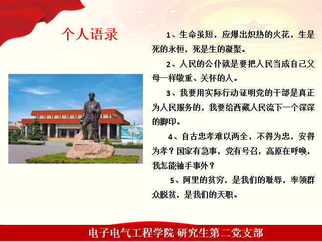 作为研究生党支部书记,应当把孔繁森精神的学习贯彻在本职工作中,牢记党员的党性原则,提高政治站位,向同学们宣传讲好历史上的优秀党员故事,让红色基因代代相传。同时我们还要学习孔繁森服务群众的精神,在日常工作中紧密联系师生群体,多方倾听和满足学生群体的合理需求,让基层党支部在日常工作中唱出主角,提高服务师生的工作能力。