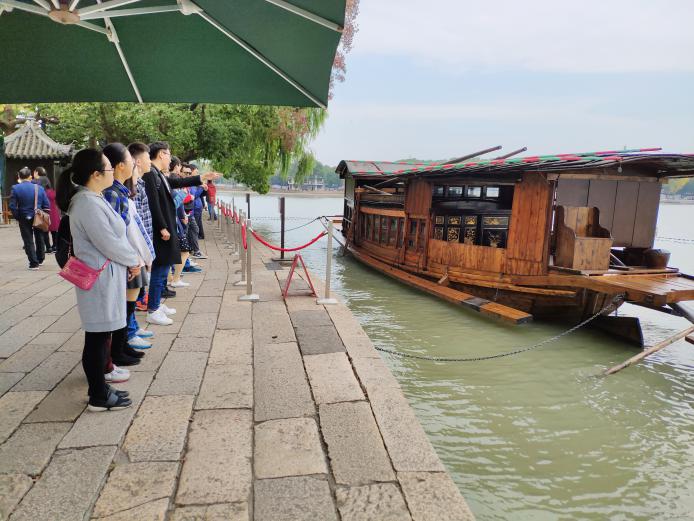 首先,全体师生党员参观了嘉兴南湖中共一大会址,湖边翠绿的柳树随风沙沙作响,似乎在向我们讲诉着当年的红色历史,这是我党梦想起航的地方,党从这里诞生,从这里出征,师生党员们心情都非常激动,一边参观一边感悟,共产党当年在那么艰难的环境中是如何排除万难并茁壮成长的。走到湖边,看到了红船依旧停靠着,大家都满怀敬畏之心的注视着她。这是一艘承载千钧、播下中国革命火种、开启中国共产党跨世纪航程的红船。
