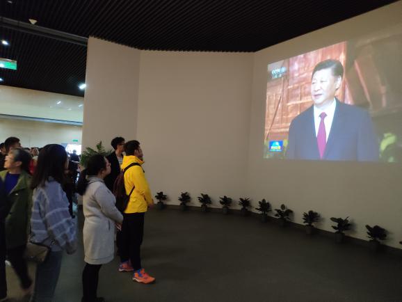 当走到习总书记落款的中国红色语录面前,党员们心中默读“红船精神——“开天辟地,敢为人先的首创精神;坚定理想,百折不挠的奋斗精神;立党为公,忠诚为民的奉献精神。”
