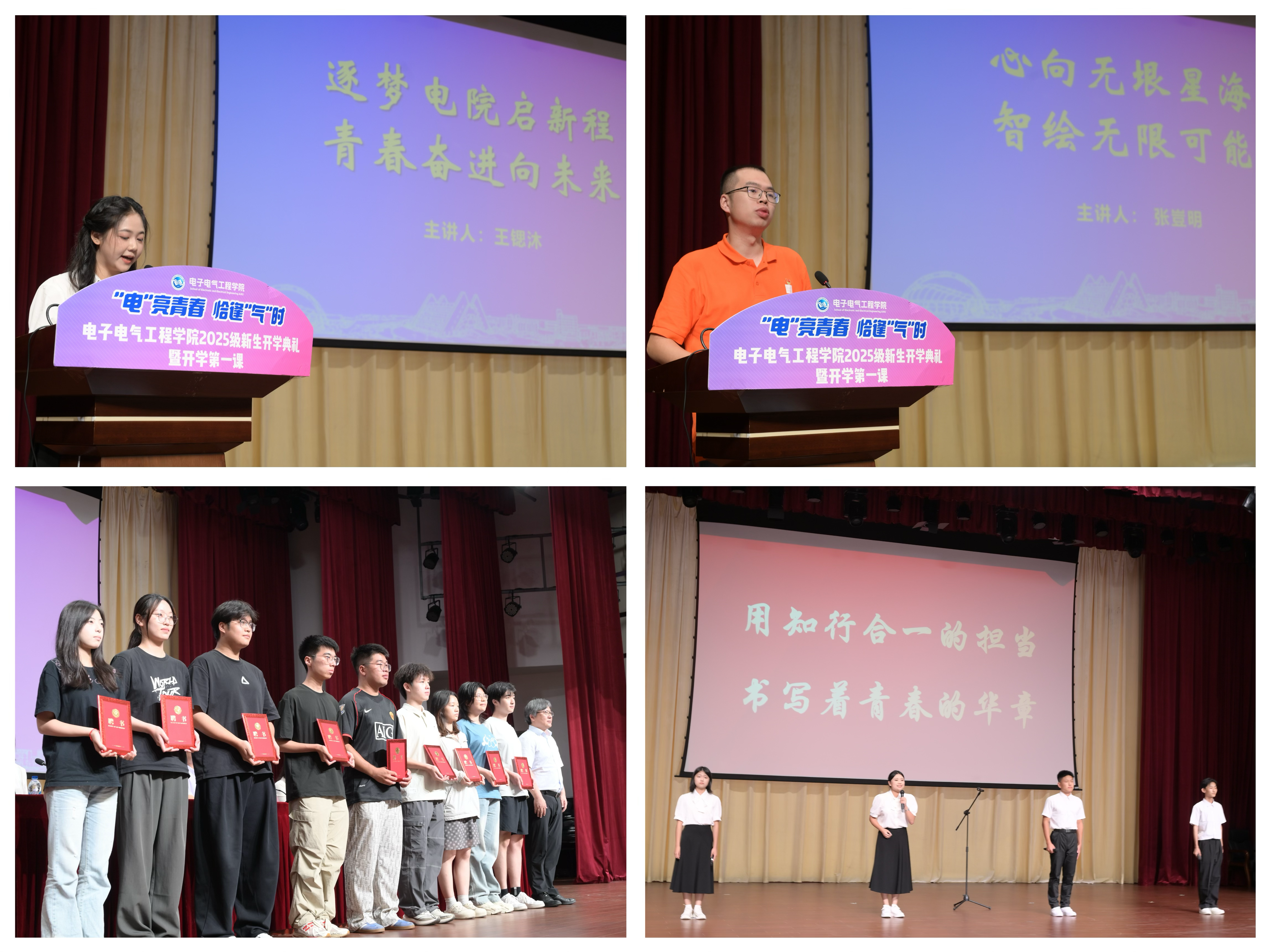 校友张豈明分享了参赛经验与成长感悟,鼓励新生脚踏实地开展实践。新生代表王锶沐表达了电气青年肩负时代使命、共创辉煌的决心。典礼上,学院为辛勤付出的导生和志愿者颁发了聘任证书,传递了电院人的温暖与奉献。学院红“芯”青年讲师团,以“芯火相传:AI时代的青年密码”为主题,宣讲了新时代青年应有的理想与奋斗精神。