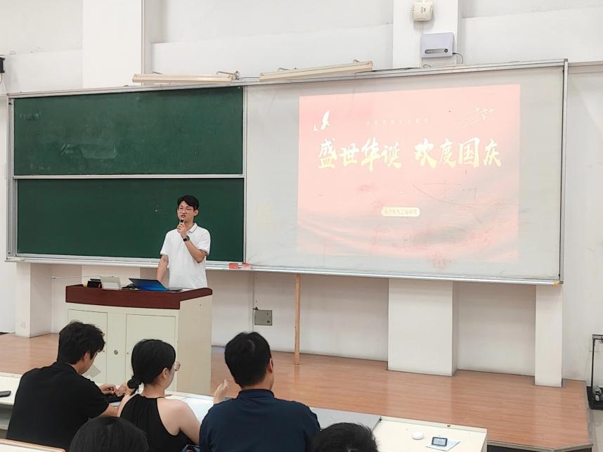 班会内容丰富多元。通过播放讲述英雄故事、开展知识竞赛等方式,师生共同回顾了新中国成立76年来的辉煌成就和宝贵经验。辅导员原振峰着重讲解了国庆节的历史意义,引导学生深刻理解国家发展的艰辛历程与伟大飞跃。在安全教育环节,原老师从出行安全、防范诈骗、网络安全等多方面进行提醒,确保学生度过一个祥和愉快的假期。
