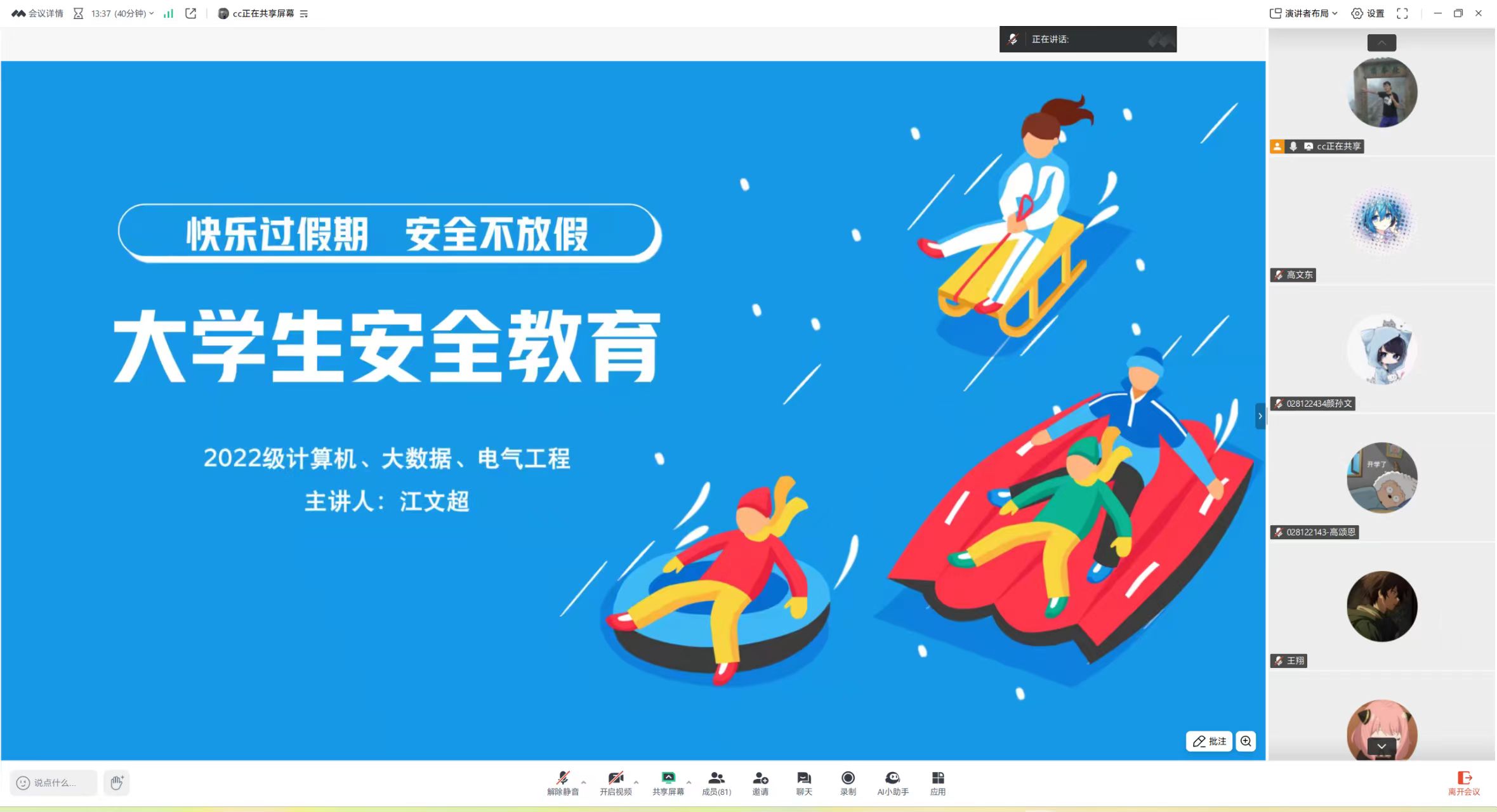 针对留校与离校学生,班会明确差异化管理要求,落实离校备案、宿舍安全自查及留校期间校园管理规定。现场互动环节深化教育成效,进一步强化了学生的安全防范意识与应急自救能力,为全院学生平安度过寒假筑牢思想与行动根基。