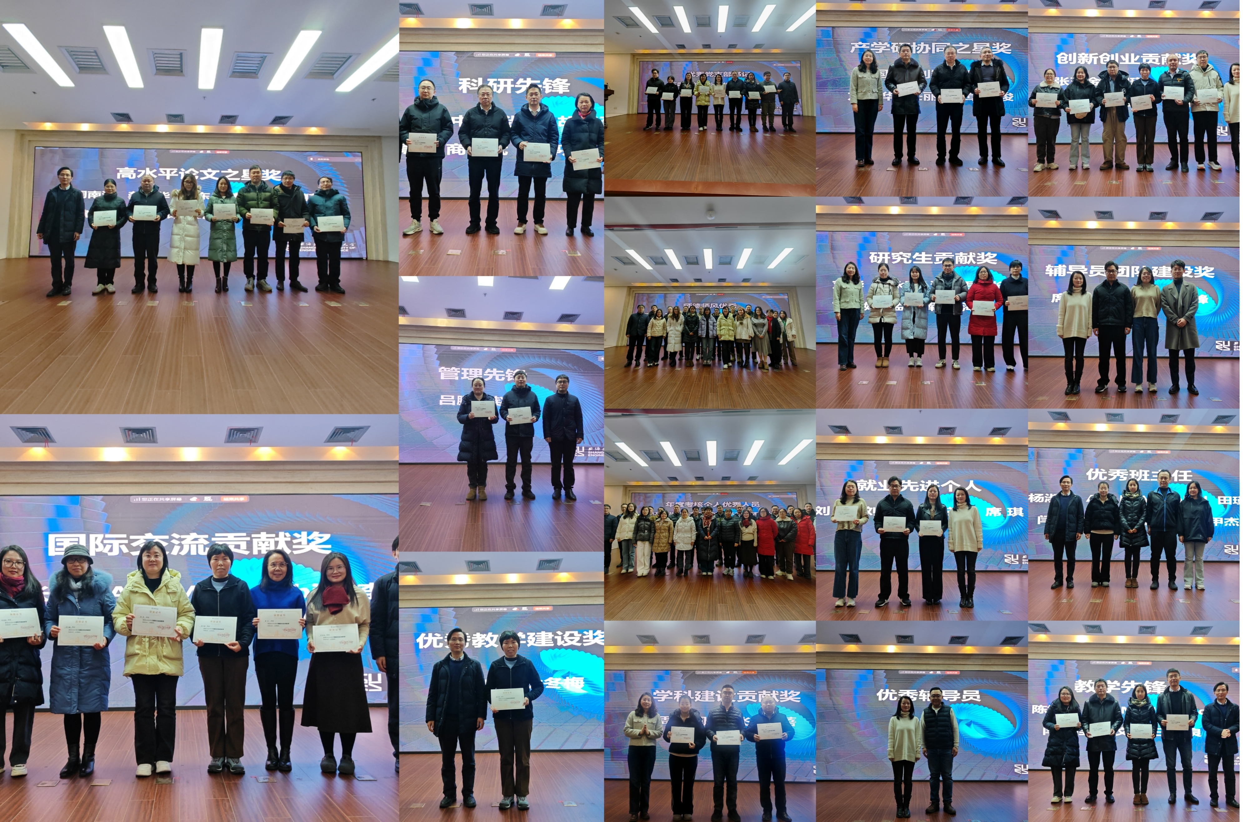 随后,学院领导班子为优秀党支部书记、师德师风优秀人员、年度考核个人优秀人员、管理先锋、学科建设贡献奖、产学研协同之星奖、研究生贡献奖、就业先进个人、优秀辅导员、创新创业贡献奖、辅导员团队建设、优秀班主任、教学先锋、优秀教学建设奖、高水平论文之星奖、科研先锋、国际交流贡献奖等获奖教职工进行颁奖,激励全体教职工以先进为榜样,踔厉奋发、笃行实干。