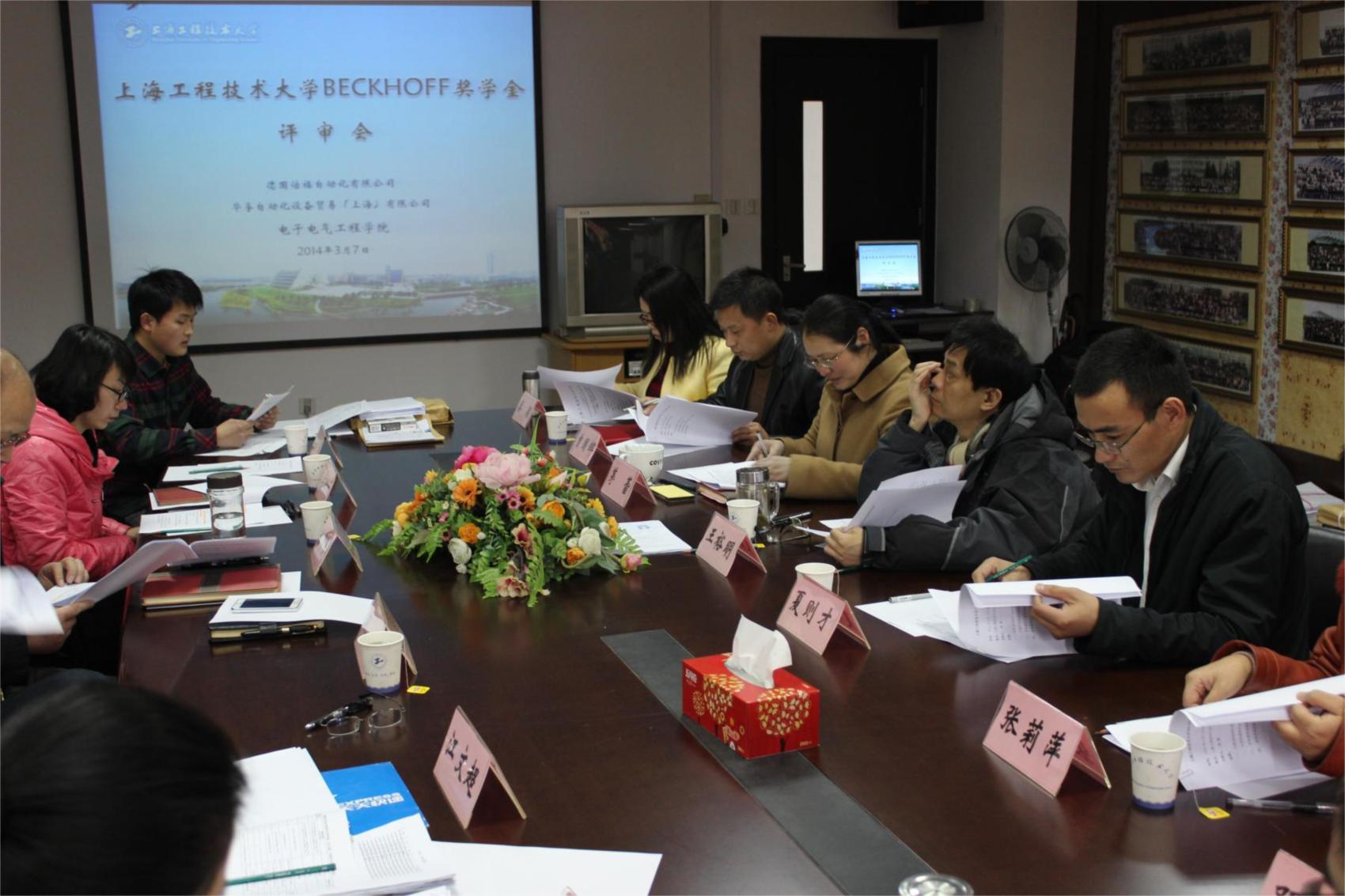 评审大会依次分为两个部分:“BECKHOFF(倍福)奖学金”评审以及“IHR益驰奖学金”评审,评审过程公开、透明、公正、有序。会上各评审委员详细阅读了奖学金的评审办法,仔细核阅了申请学生的材料,并听取了学生辅导员对学生的情况的整体汇报。