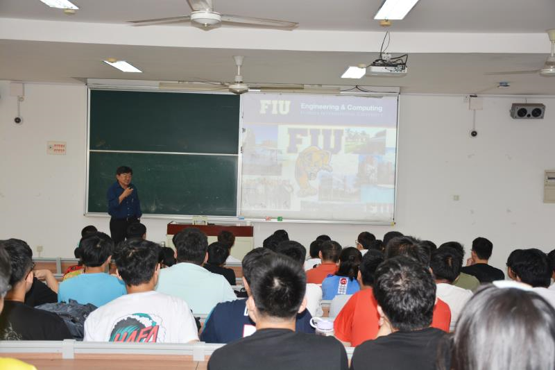 之后在教学楼F106教室,针对2016级电气工程及其自动化专业全体学生,李媛媛副院长先对2+2合作项目的背景和合作内容进行初步介绍,Yen教授就佛罗里达国际大学的具体情况以及专业设置等进行详细说明,刘瑾副院长对专业的培养计划进行了深入解读,最后同学们就感兴趣的问题与Yen教授进行互动和交流。