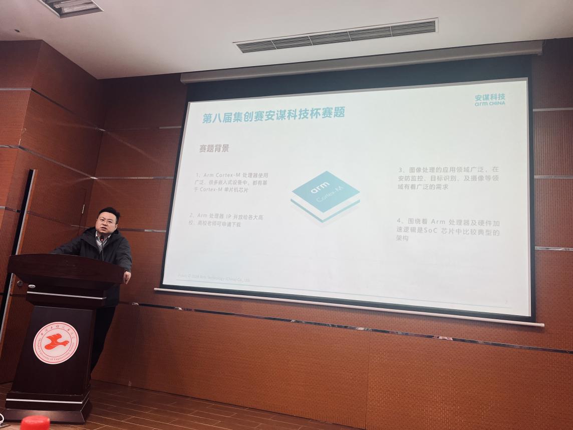 在赛题解析环节,上海工程技术大学电子电气工程学院金婕副教授和各杯赛企业代表分别对集创赛数字与SoC方向赛题、企业赛题进行了介绍和深入解析,以及现场互动交流。为参赛选手们初赛了解题目提供了宝贵的参考意见。此外,各个杯赛企业代表也分别上台,包括:移知科技(上海)有限公司、青岛若贝电子有限公司、飞腾信息技术有限公司等,对各自企业的赛题进行了介绍,并与现场师生进行了互动交流。