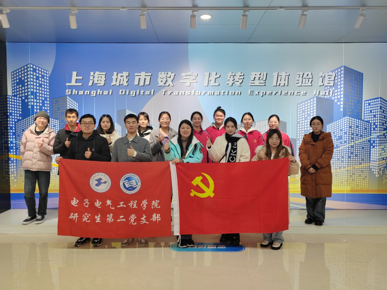 为进一步学思践悟习近平新时代中国特色社会主义思想,推动师生党员对数字化转型的学习和理解,2024年1月4日,电子电气工程学院研究生第二党支部和智能制造攻坚党支部师生党员,赴上海城市数字化转型体验馆参观研学。