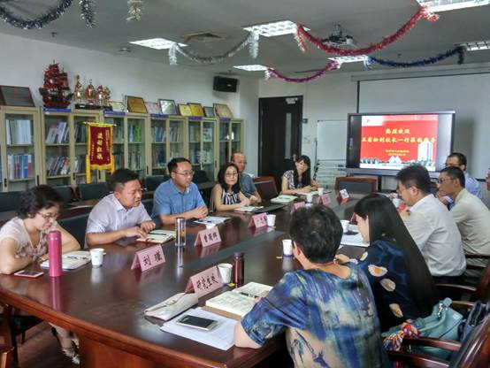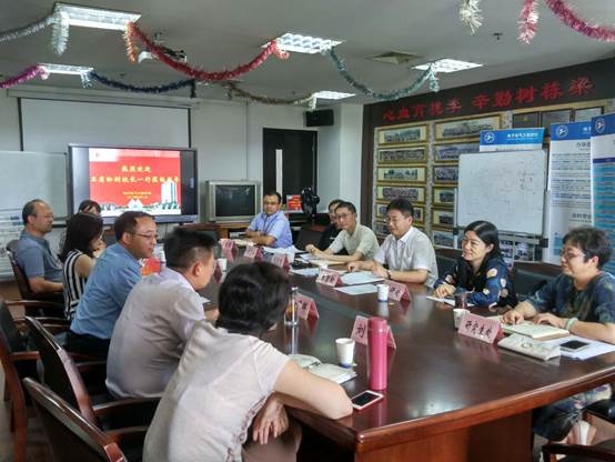 2017年9月1日下午,在行政楼912室,副校长王岩松,规划处金峥杰副处长,科研处陈萦副处长,研究生处张莉萍副处长,信息办张玮副主任,校办顾守进老师一行前来学院指导工作。我院院长方志军,书记陆展华,副院长李媛媛,刘瑾,史志才、曾国辉出席会议。