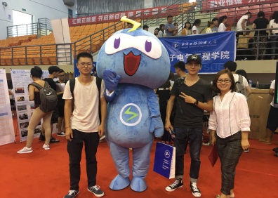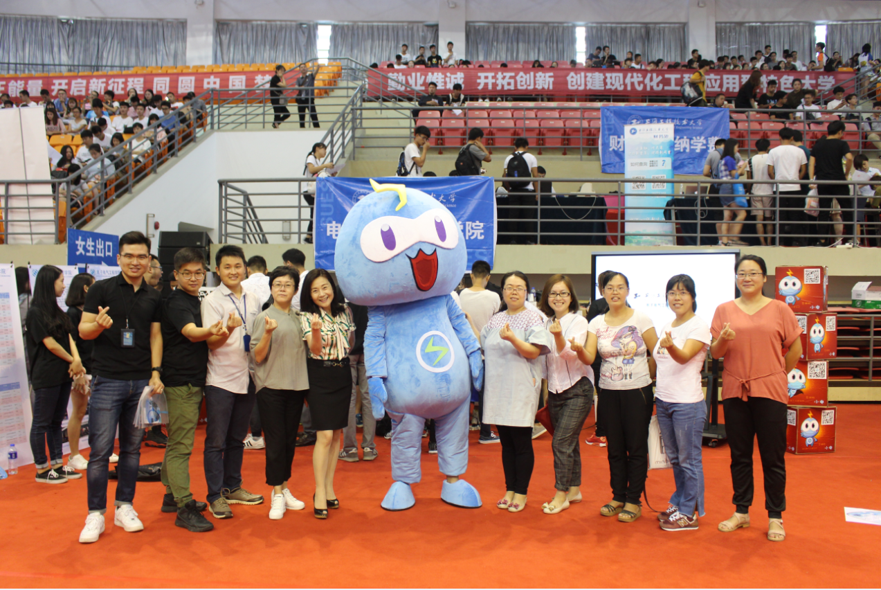 除了常规的报道流程外,以电院吉祥物小电为形象的大型人偶也为新生们带来了欢乐。学院老师们集体与小电合影并愉快地和小电互动,完成报到后的新生也兴高采烈地拉着小电合影留念,小电也会挥手向新生们表达欢迎。