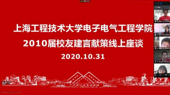 2020年10月31日上午9点半,上海工程技术大学迎来了42周年校庆,由于疫情原因,今年线上组织了2010届秩年校友为母校建言献策座谈会,共有近20名校友参加了本次会议,会议由江文超老师主持。