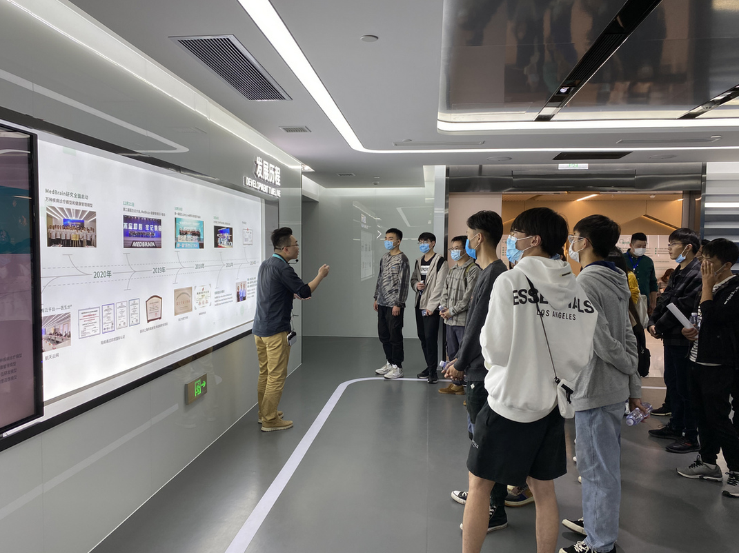 在体验了“互联网+工业”的模式后,同学们来到大楼的另一侧了解“互联网+医疗”的“大专家.COM”平台。平台集中了数名院士专家的知识和经验,通过AI技术赋医学智慧,致力于提高医生医技水平,提高百姓健康素养,服务于医,服务于民。