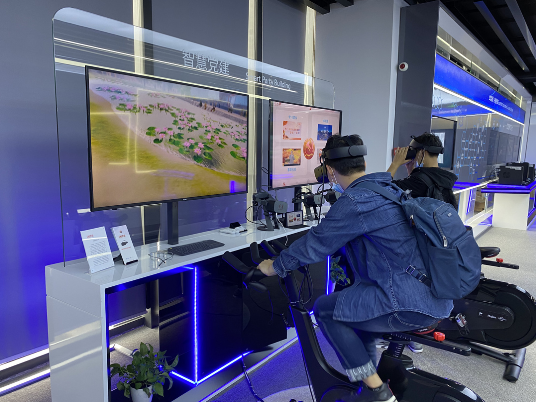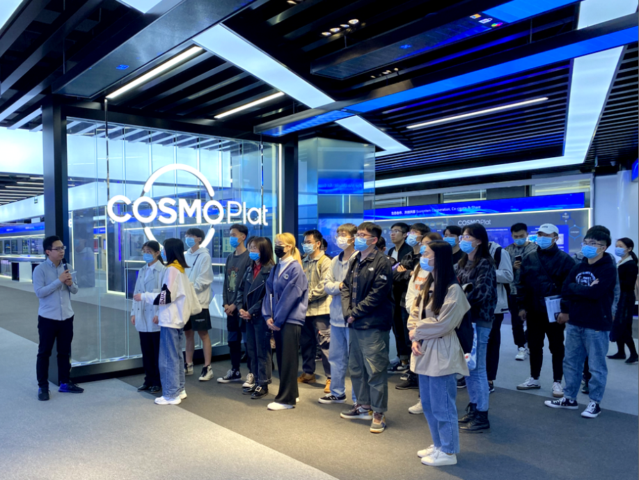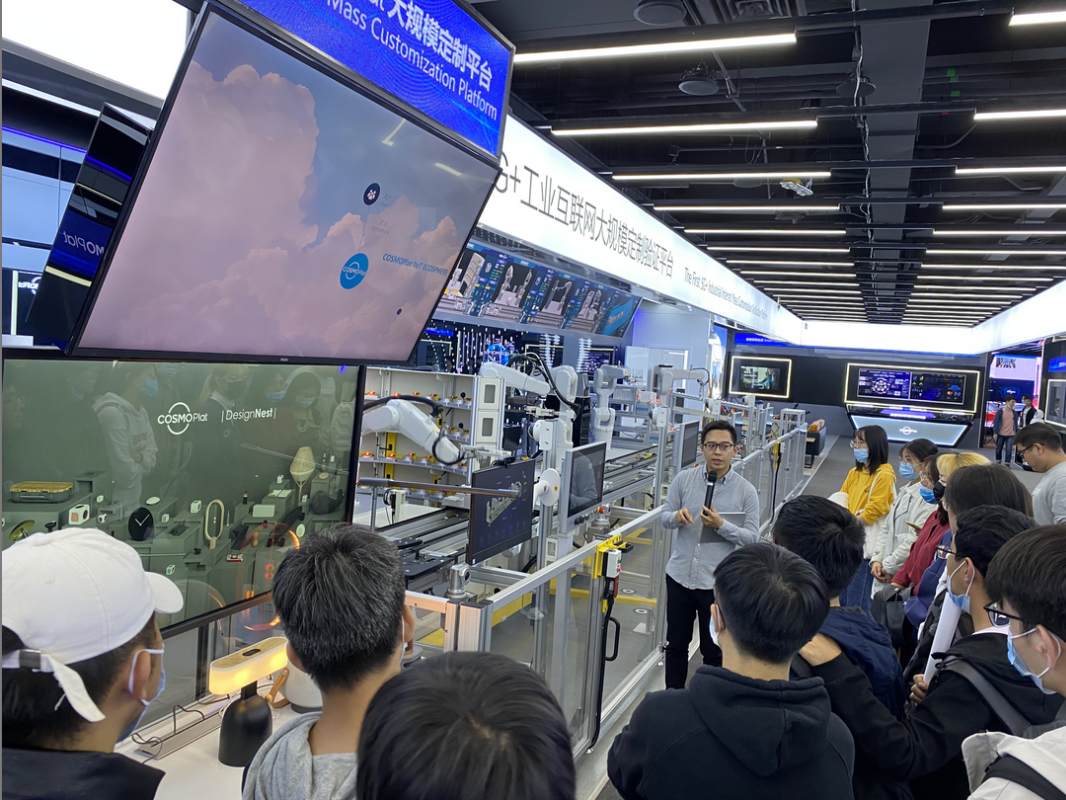 招聘会后学生走进G60,共同体验科技的魅力和松江日新月异的变化。在海尔Cosmoplat展示馆中,同学们互动体验了全球首个5G+工业互联网大规模定制验证平台,走近人工智能,感受科技魅力。