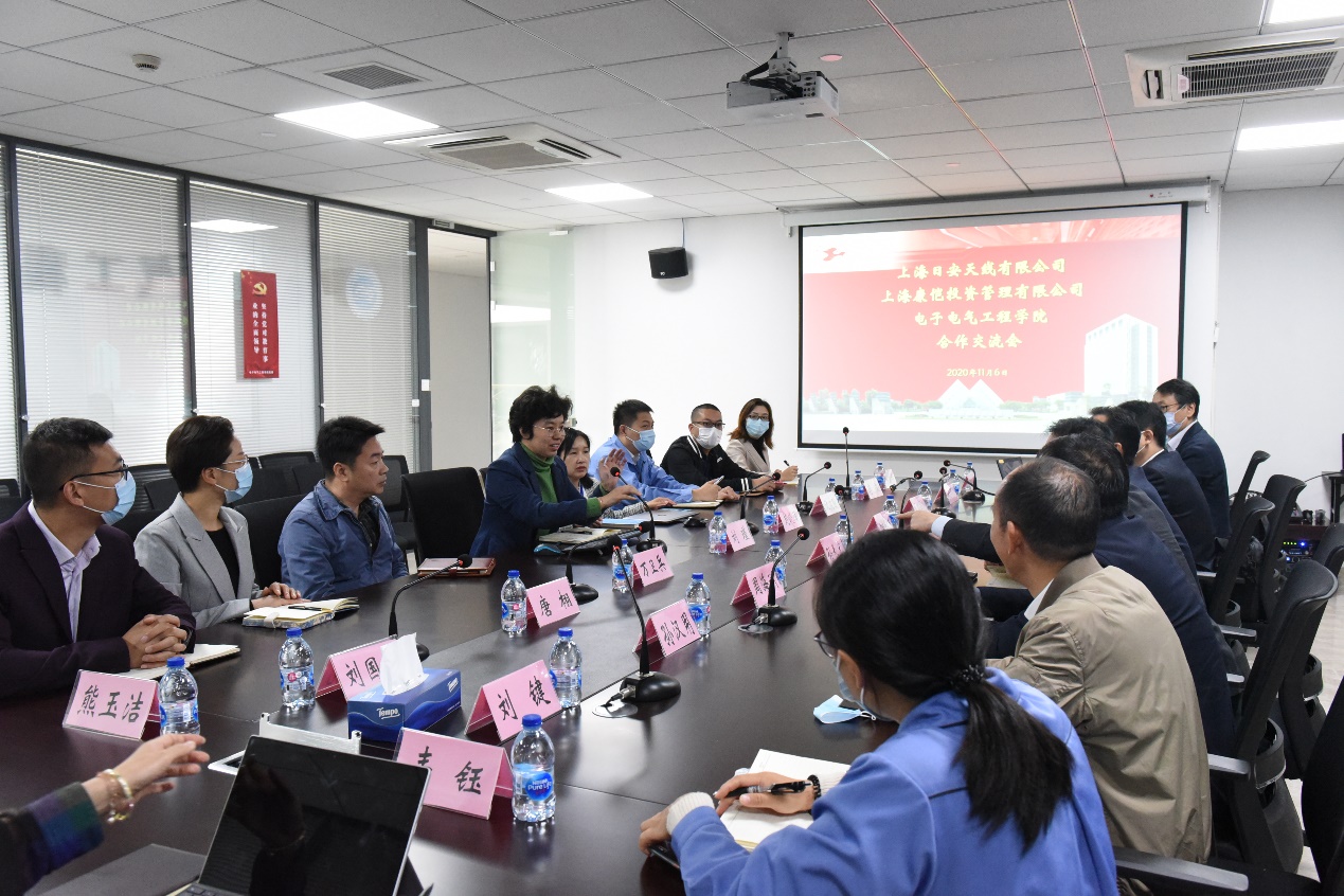 11月6日上午,上海日安天线有限公司孙长宏总经理一行、上海康恺投资管理有限公司孙汉用总经理一行来院交流合作事宜。学院副院长刘瑾、赵晓丽及相关专业教师出席,会议由刘瑾副院长主持。