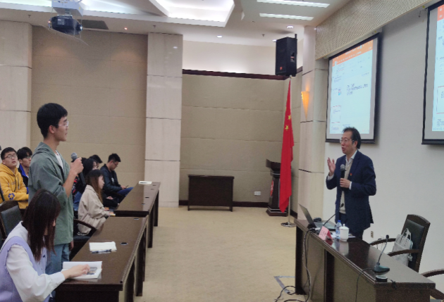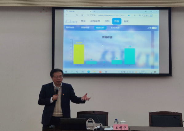 课上,王国中教授还就5G+AI+超高清技术融合创新,实现高质量发展的全新课堂教学模式i-Class,为同学们现场进行演示和互动,使同学们对5G技术有了更深刻的认识。王国中教授勉励学生党员们要多思考、多学习,强化党员意识、筑牢信仰之基,不断增强“四个意识”、坚定“四个自信”、坚决做到“两个维护”,不断提高政治觉悟,起到党员的先锋模范作用。