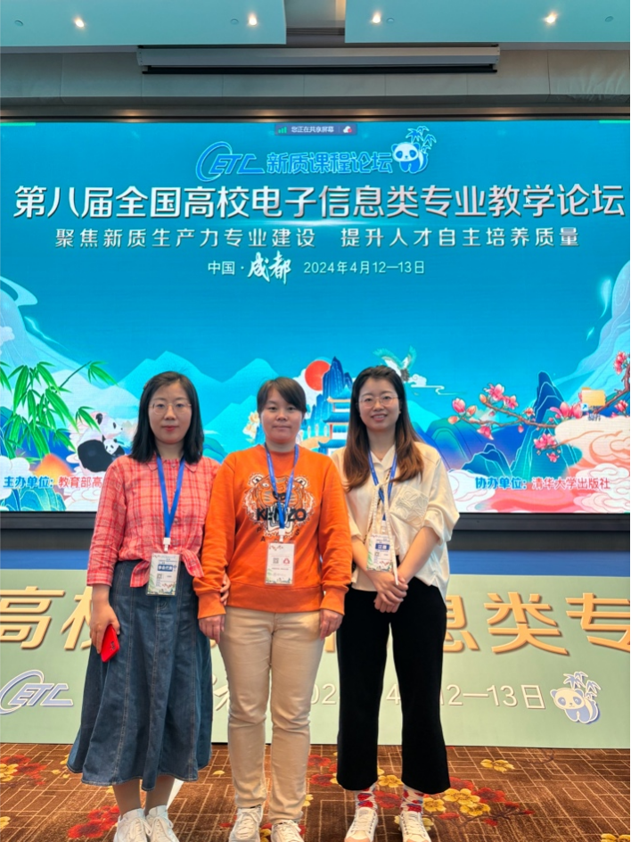 发展新质生产力的先导是培养拔尖创新人才,而人才自主培养的龙头在高等教育。4月12日,自动化系阚秀、李毓媛、江蓓三位教师赴四川成都参加了“第八届全国高校电子信息类专业教学论坛”,与来自全国的电子类专业专家教授进行了沟通和交流。