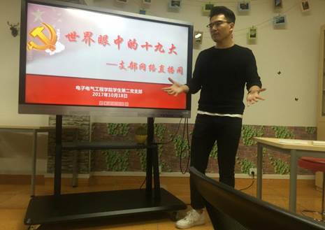 这是电气学院学生第二党支部围绕“十九大”的召开,通过网络直播的方式,在园区“学生之家”组织开展的一次特殊的主题学习活动。本次组织生活是在当天集中观看了“十九大”直播的基础上,围绕习近平总书记代表十八届中央委员会作的工作报告,收集中外媒体的报道、普通百姓的评价、党员同志的感想,站在不同层面、用不同视角学习十九大、解读十九大、传播十九大,在网络上谈论社评、分享故事、交流体会,为网友呈现“世界眼中的十九大”。