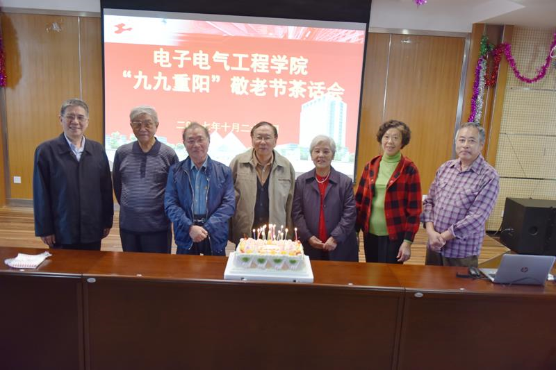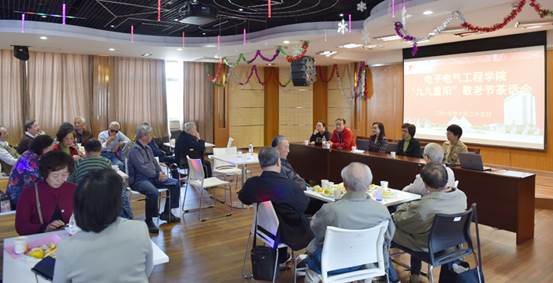在党的19大胜利召开以及第30个敬老节暨九九重阳节到来之际,电子电气工程学院工会在学院党政领导的支持下,10月25日下午,学院退休教师在长宁校区综合楼5楼多功能厅欢聚一堂,举行茶话会共同庆祝敬老节,传递学校领导对退休教师的关心慰问。老教师们早早来到会场,大家热情地握手问候,围坐在一起倾诉着相思之情,现场充满着温馨的氛围。学院党委书记陆展华、院长方志军、副书记秦颖、副院长刘瑾、院工会主席施一萍,院办主任吴丽萍以及部分系主任、支部书记、院工会小组长们也参加了茶话会。会议由陆展华书记主持。