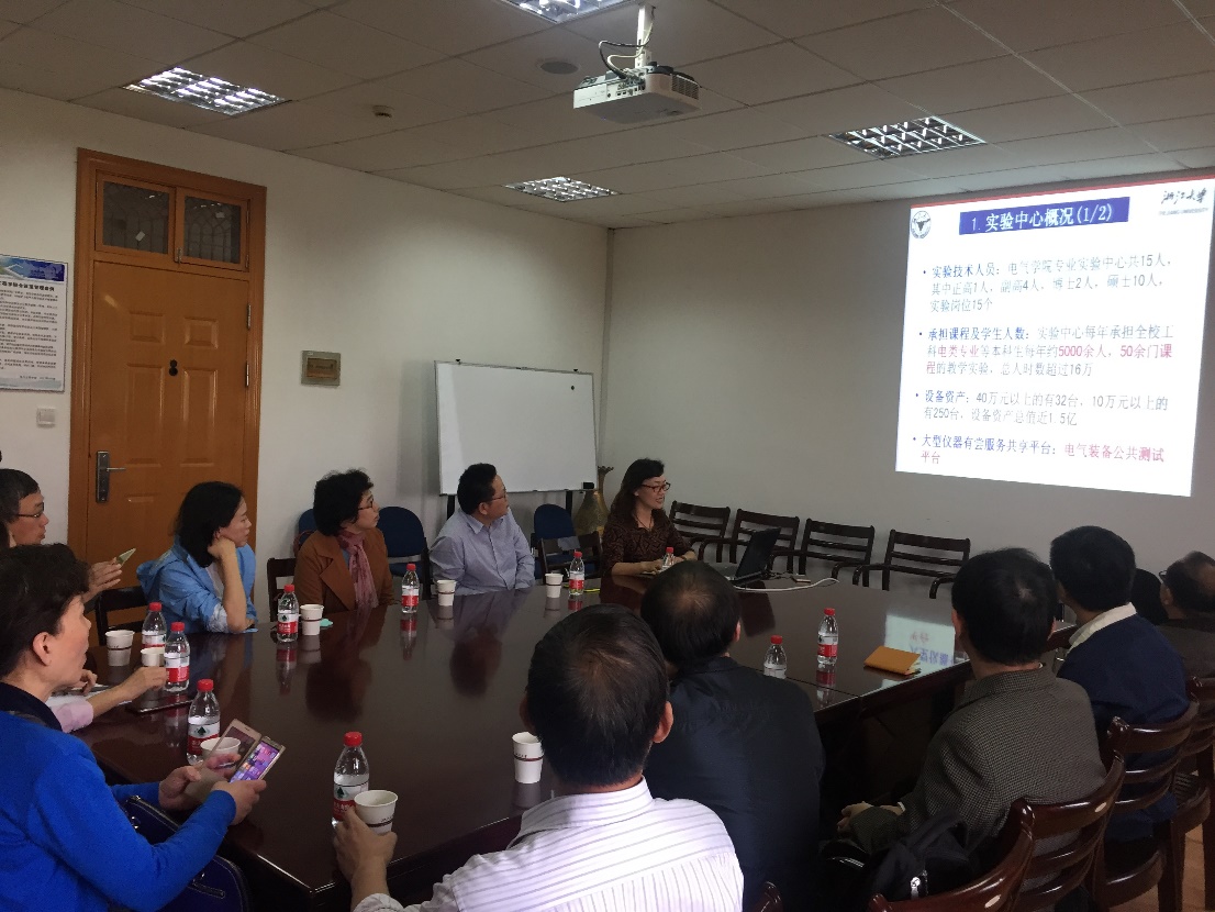 随后,在杨所长的带领下,各位老师参观了本科教学的电力电子、自动控制、电机控制等实验室,并就本科实验课程的教学模式与课程设置、实验室的建设与管理等方面与浙大老师进行了深入的交流。