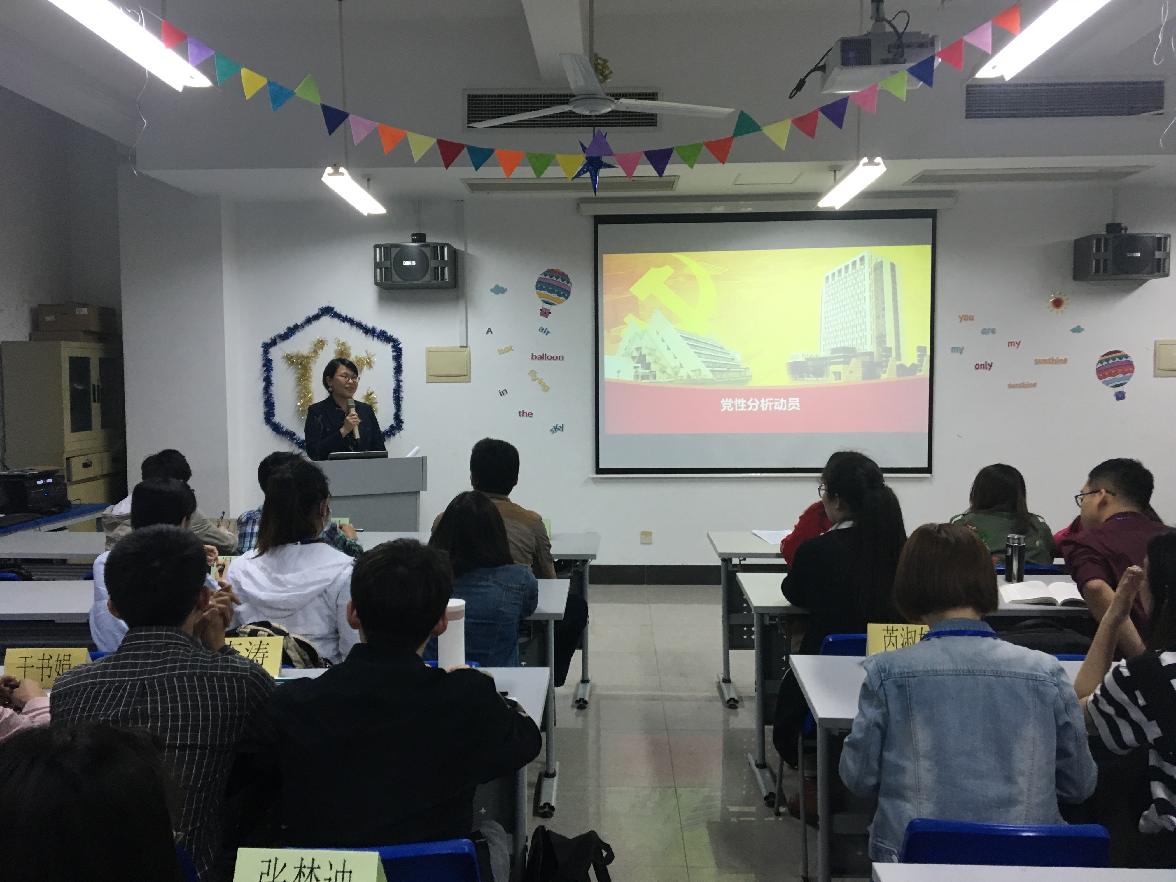 5月2日晚17:00,上海工程技术大学第十二期预备党员培训班第四课在实训楼4405展开。党委组织部组织员熊伟老师以“党性分析动员”为主题展开课程。