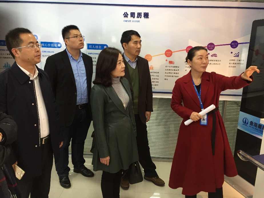 走出惠通集团,代表团一行跟随王军副区长奔赴镇江市企业网络服务平台京口基地,与金海星导航科技有限公司的董事长金文女士进行了深入的交流。该公司是一家专业从事北斗应用及相关位置服务应用高科技企业,将北斗高精度与AI的融合研发作为核心业务,重点聚焦于人工智能技术的交通应用。其开发的智能安全驾驶辅助产品引起了教师们的极大兴趣。双方就硬件设计、软件开发、精确度、市场应用效果等方面展开了讨论,并期待日后有进一步的合作。