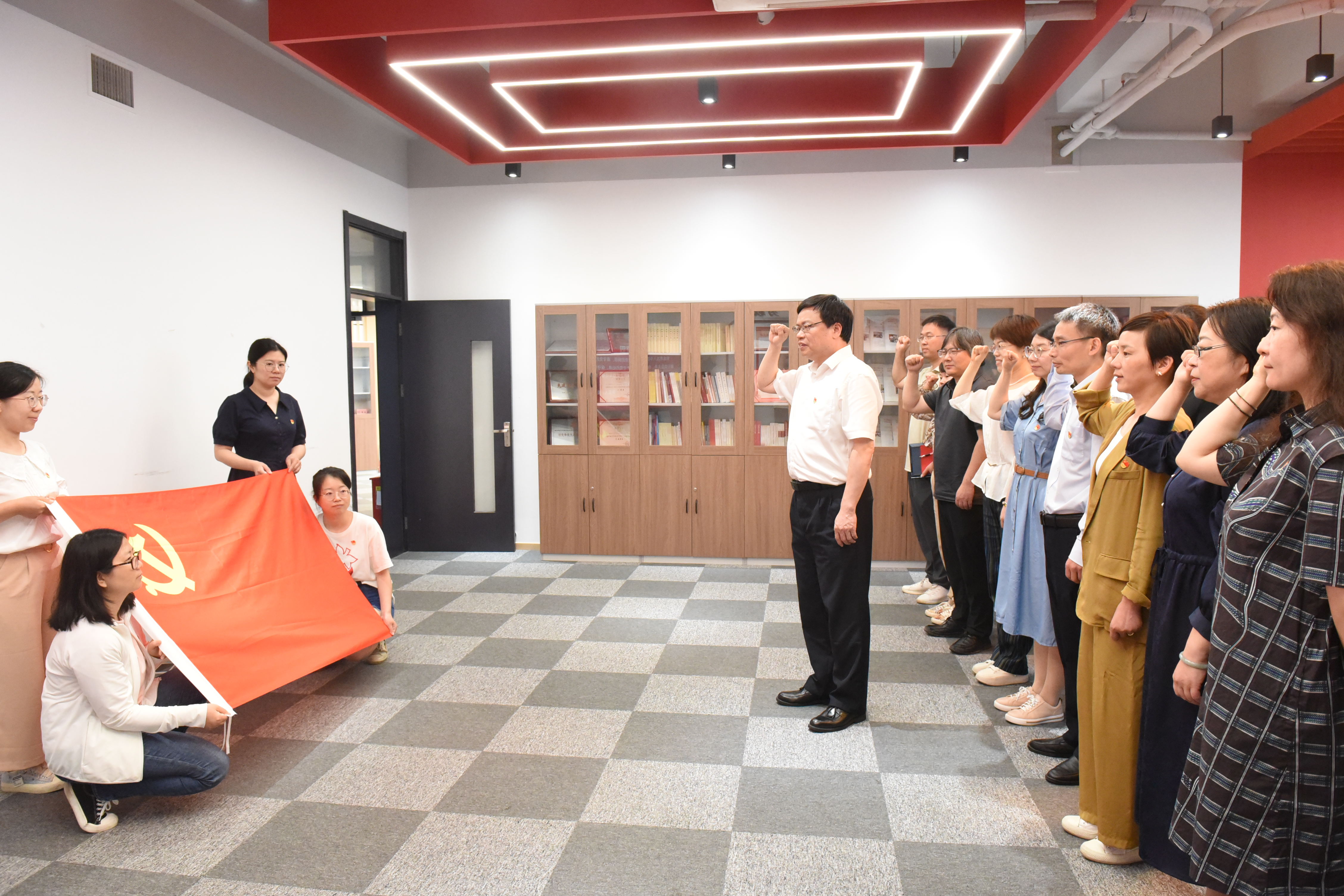 会后,夏春明副校长在现代交通工程中心7-1003室带领与会党员重温入党誓词。