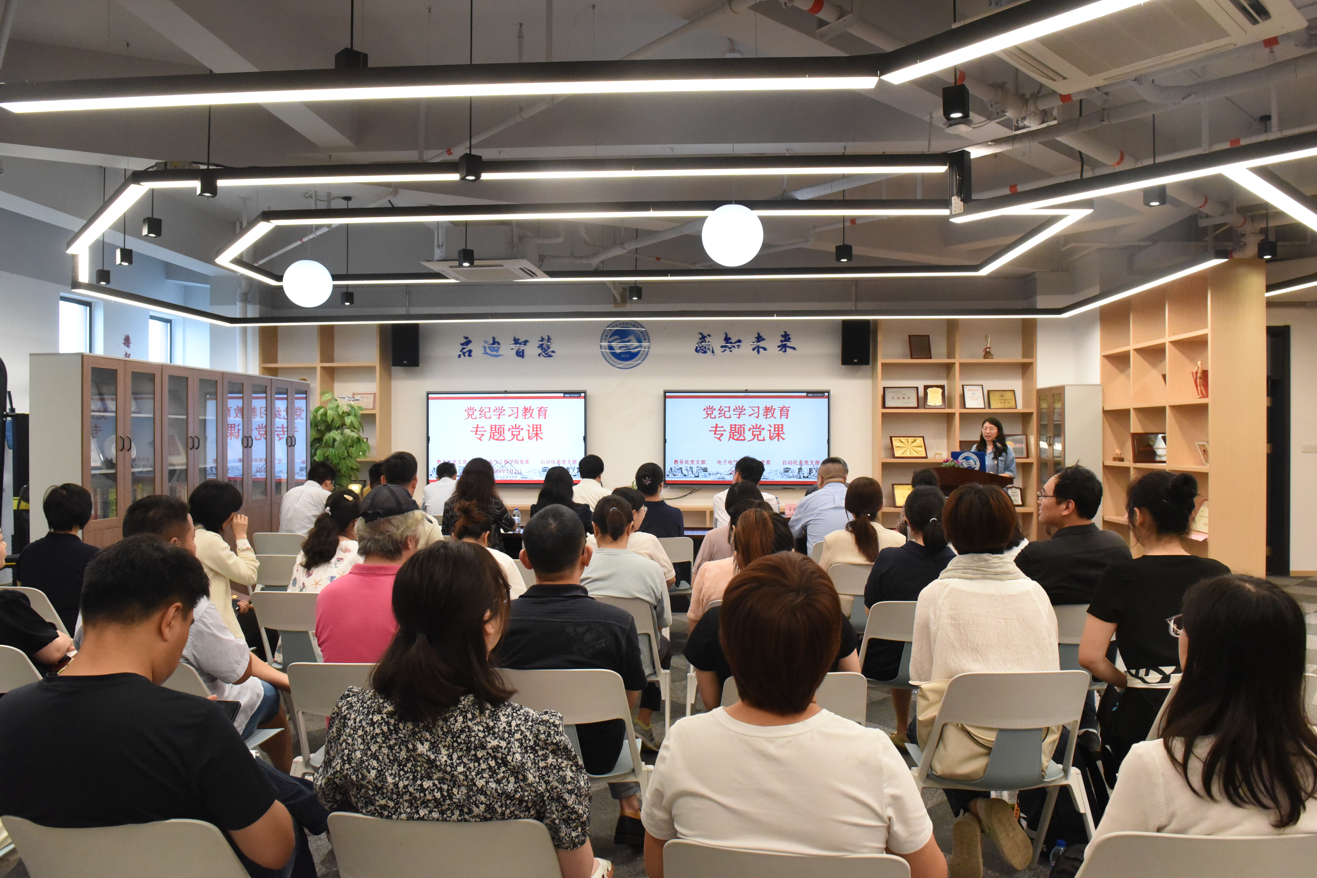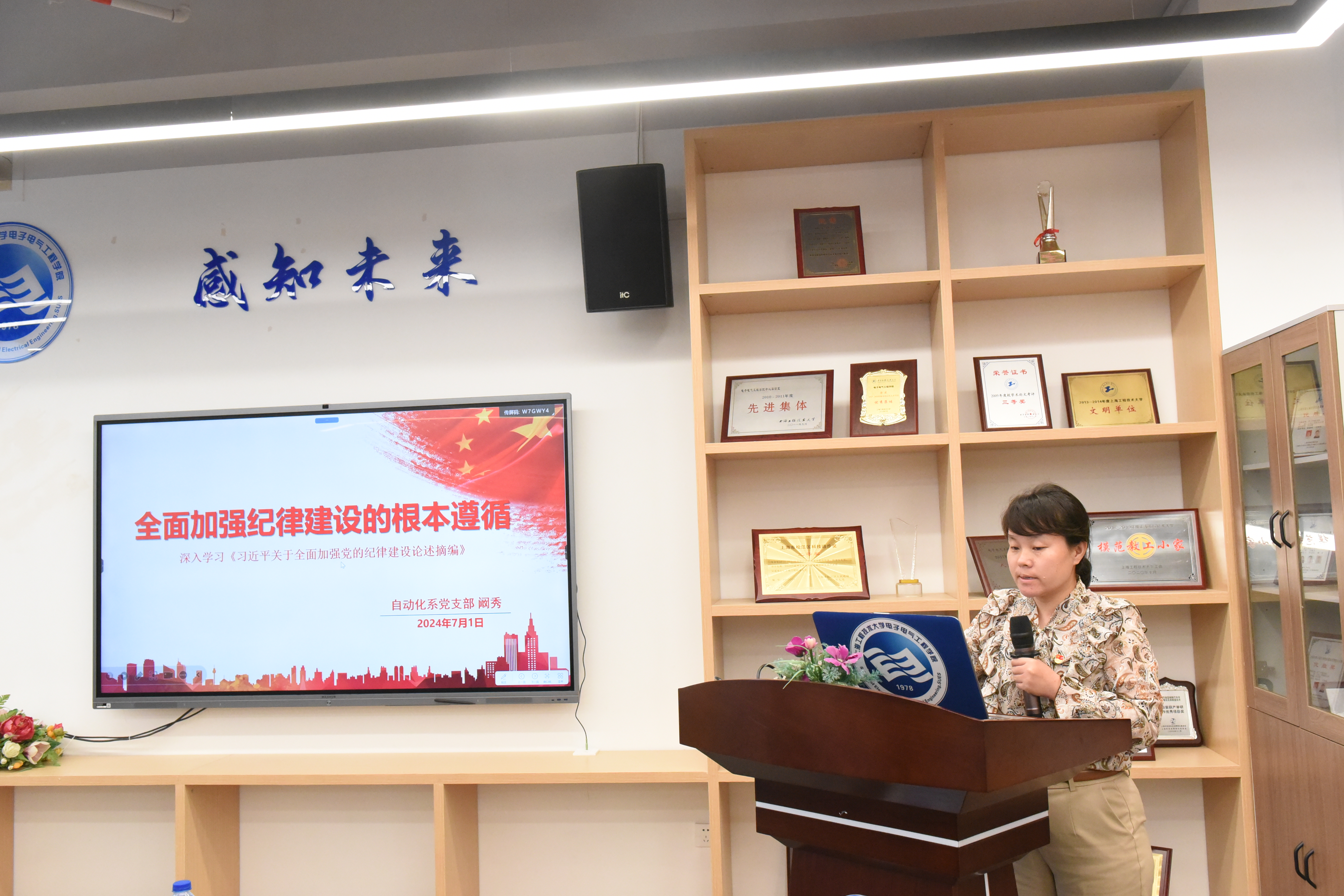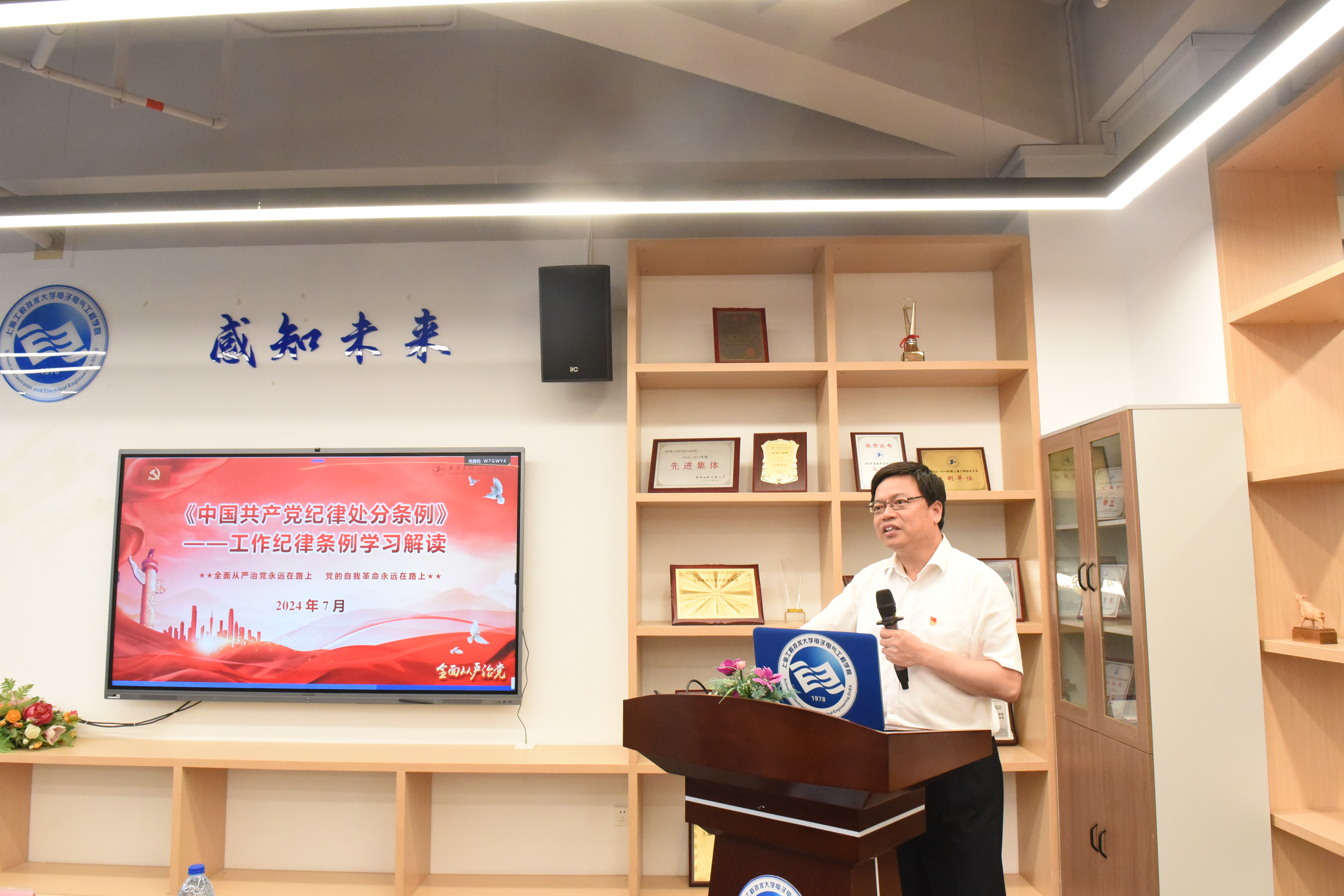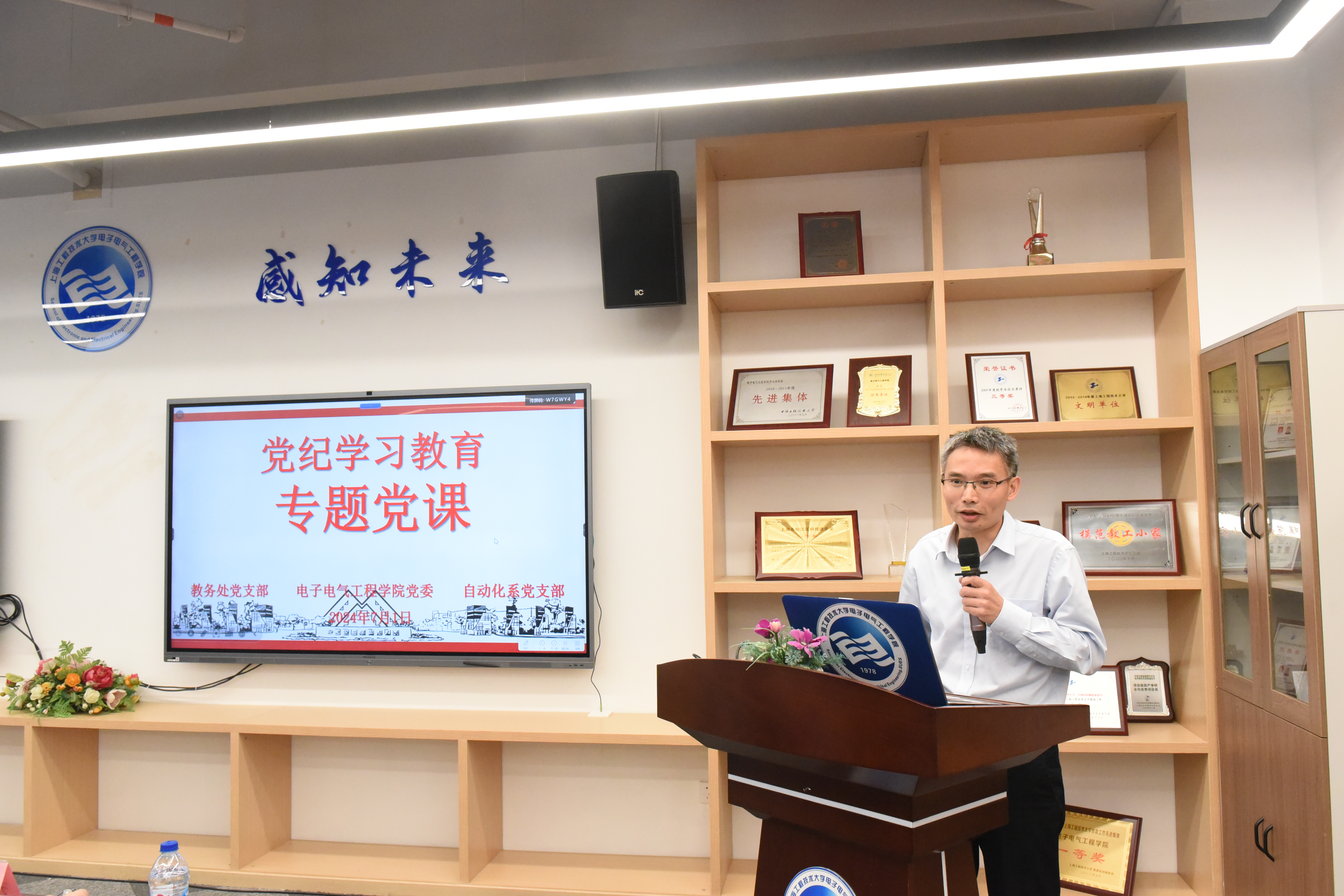 7月1日下午,在现代交通工程中心7-1002室,校党委常委、副校长夏春明以“《中国共产党纪律处分条例》——工作纪律条例学习解读”为题为基层联系点讲党课。电气学院党委委员、教务处党支部、质量办党支部、电气学院自动化系党支部参加学习。会议由电气学院党委副书记、院长李媛媛主持。