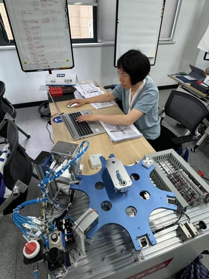 该培训为教师们带来基于智能产线中的TMBH综合工程实践课程:《智能产线数字孪生:建模与仿真》。课程由资深行业工程讲师授课,带领大家完整地实施智能产线相关项目,从电气自动化基础、工艺分析、图纸理解、电气排故、结构化功能设计与程序开发到最终的生产线数字孪生建模与虚拟调试。同时,与同专业的老师,对智能制造时代的专业课程发展,对综合实践教学创新进行探讨和分析。参训教师通过教学者和学习者双重视角,在实践教学水平、项目交付能力以及教学改革的思路工具方面收获满满,在实践教学和指导竞赛的工程能力方面都获得了提升。