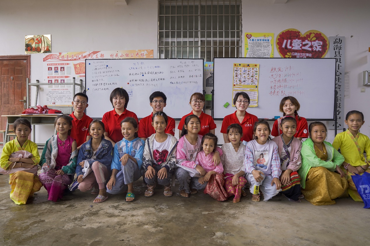 在探访过程中,她还在当地傣族小学中志愿支教,教孩子们演唱傣族歌曲,带他们学习汉字,陪孩子们玩耍,帮助老师照顾傣族的孩子们。