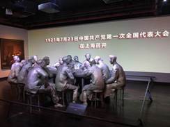 大家沿着石库门缓缓进入中共一大会址,参观了主题为“伟大开端——中国共产党创建历史陈列”的展览。展览由“起点”、“前赴后继·救亡图存”、“风云际会·相约建党”、“群英汇聚·开天辟地”、“追梦”等五个部分组成。结合图片、实物、史料、模型、影像等形式,大家“穿越时空”真切感受了中国共产党历经磨难、开天辟地的历史时刻,深深缅怀革命先烈,进一步铭记党的奋斗历史。