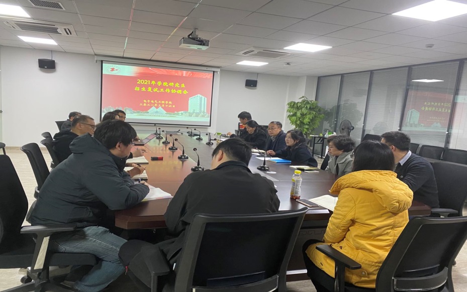 为认真贯彻落实教育部、上海市教育厅2021年全国硕士研究生复试工作相关精神,我校2021年硕士研究生复试采用远程网络复试形式进行,学院将于2021年3月20日、3月21日分别进行2021级控制科学与工程专业、电子信息专业研究生招生复试面试工作。为加强复试录取工作的规范化、标准化,学院成立了工作领导小组和监察小组,制定了详细的工作方案。为了更好的落实各项工作举措,学院于2021年3月16日在现代交通工程中心组织召开了招生复试协调会,学院党委书记范君晖,院长方志军,副院长赵晓丽,副院长刘瑾,各面试小组组长,小组秘书参加了此次会议。