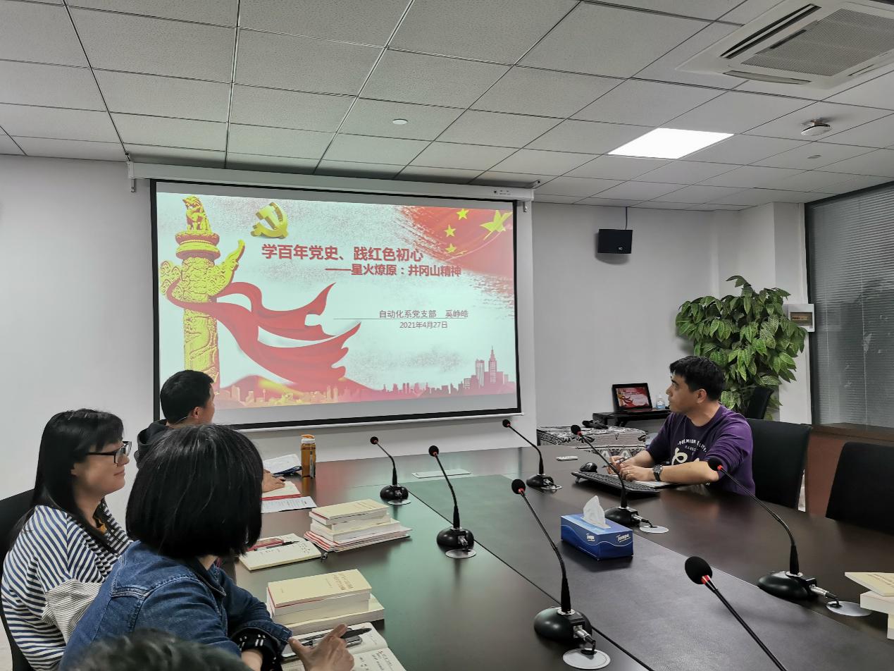 2021年4月27日下午,学院“学百年党史、践红色初心”支部书记系列微党课迎来了第二讲,自动化系党支部书记奚峥皓老师做了《星火燎原:井冈山精神》的主题党课。学院党委书记、副书记、党支部书记、副书记等现场学习了党课内容。