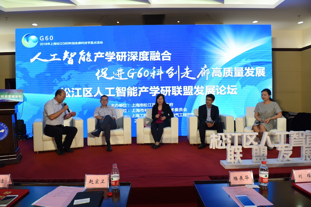 5月18日,以“人工智能产学研深度融合,促进G60科创走廊高质量发展”为主题的“松江区人工智能产学研联盟发展论坛”在我校隆重举行,该论坛由上海市松江区人民政府主办,上海市松江区科学技术委员会与上海工程技术大学电子电气工程学院共同承办。松江区政协副主席、区科委(信息委)主任赵宏卫,东华大学机械工程学院院长张洁,科大智能人工智能事业部总经理杨浩,上海吉控传动系统有限公司总经理丁凯,同济大学教授张皓,电子电气工程学院党委书记陆展华、党委副书记秦颖、副院长史志才、刘瑾以及企业、教师和学生代表百余人出席了论坛。