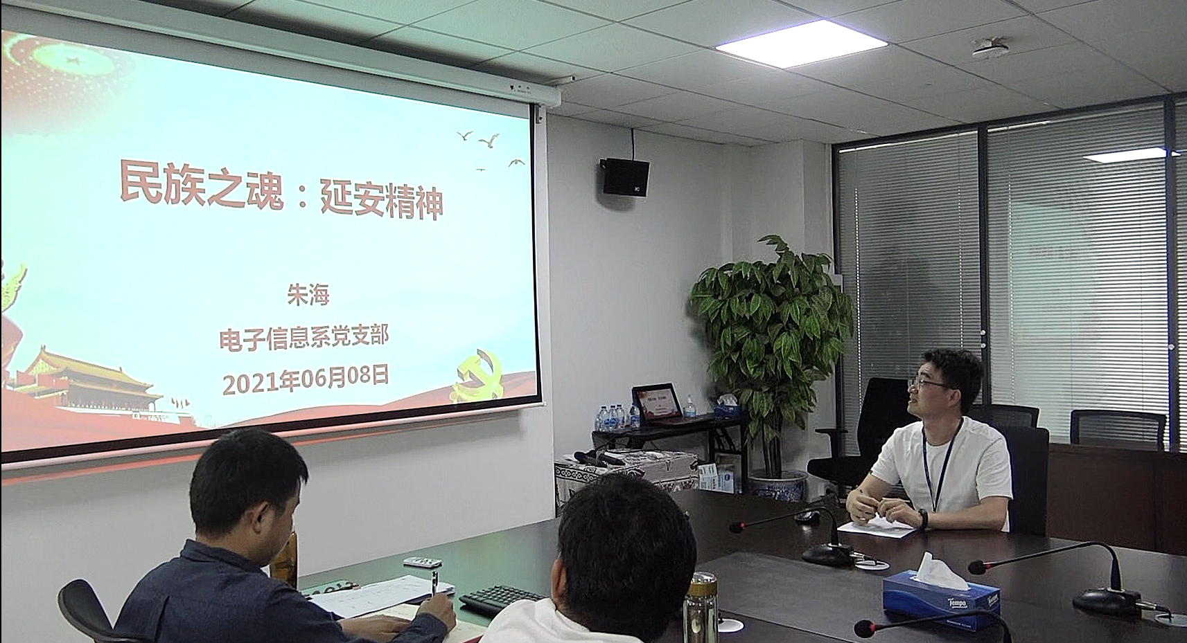 6月8日下午,电子信息系党支部副书记朱海老师在现代交通工程中心7950室做了《民族之魂:延安精神》主题党课。学院党委书记、副书记,党支部书记、副书记等现场学习了党课内容。