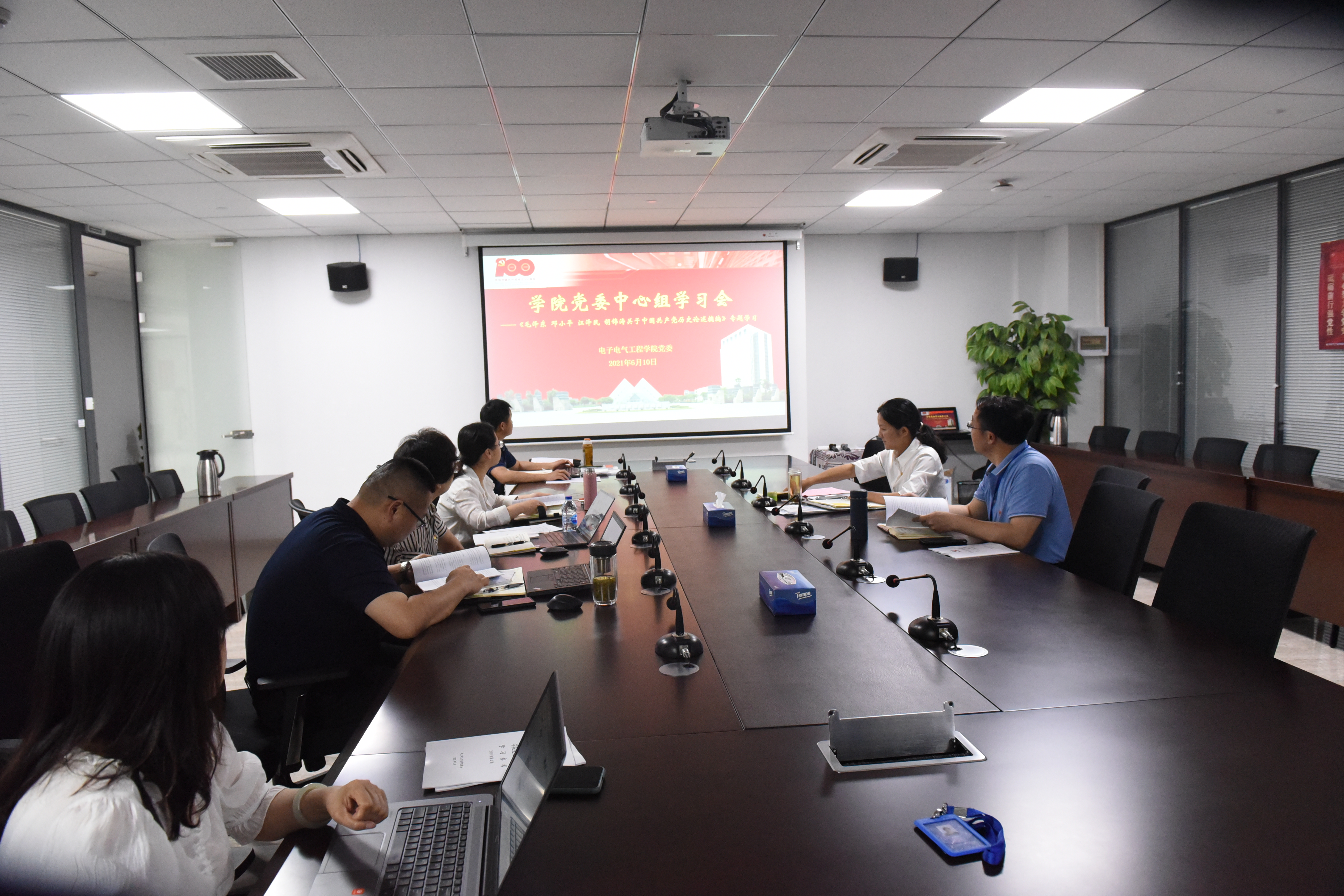 6月10日上午,学院党委中心组在现代交通工程中心7950室专题研学《毛泽东 邓小平 江泽民 胡锦涛关于中国共产党历史论述摘编》。学院党委委员、党政领导参加学习,会议由学院党委党委书记范君晖主持。