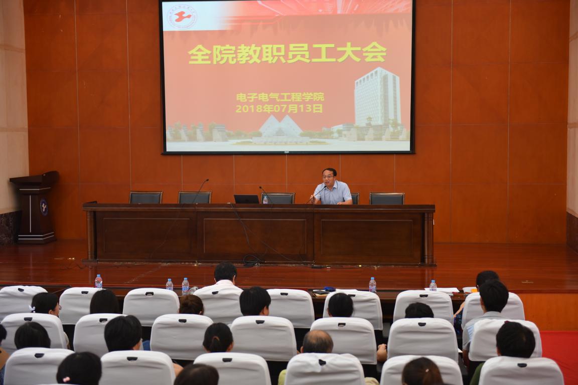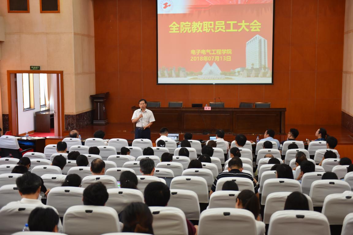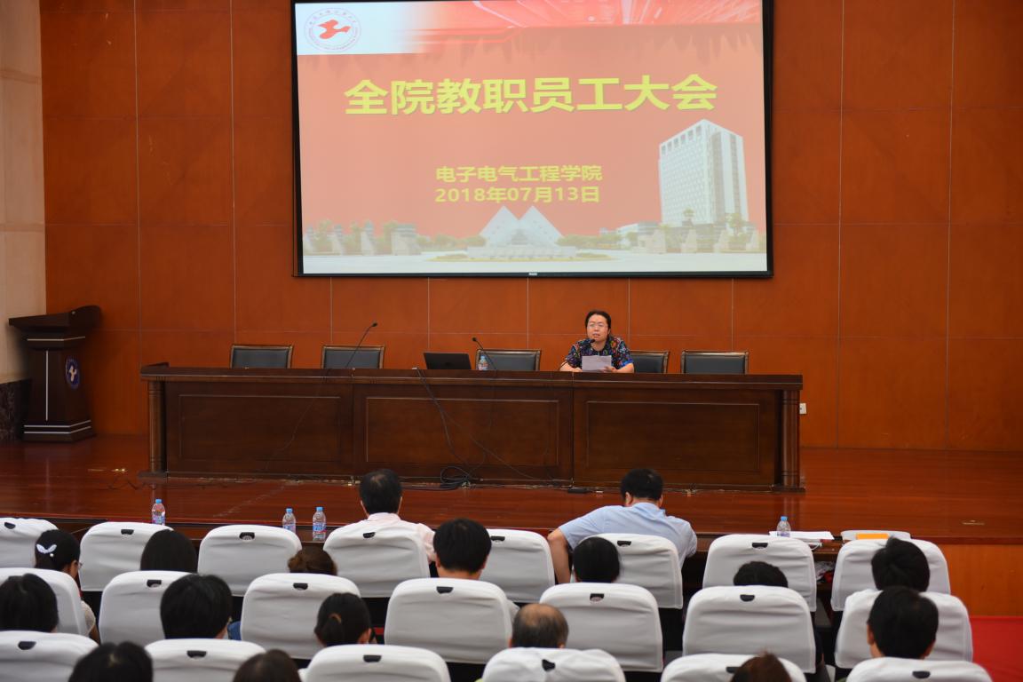 7月13日上午,电子电气工程学院召集全体教职员工在行政楼B301开会,总结本学期以来的工作并安排暑期工作。会议由学院党委副书记秦颖主持。