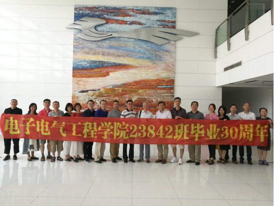 蝉鸣阵阵,程园茵茵。7月21日上午,电子电气工程学院1988届电器专业23842班原班主任张正明老师和15位校友们相聚上海工程技术大学松江校区,追忆岁月,畅叙情谊,共贺母校40周年华诞。校党委副书记史健勇、电子电气学院党委副书记秦颖、校友办副主任周家樑及校友办和学院老师等热情接待了校友们一行。