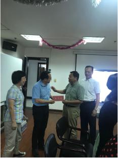 7月27日下午1点30分,在行政楼912室,校党委副书记、工会主席史健勇,校工会常务副主席柳如荣一行领导来我院慰问暑假坚守岗位的老师们,校领导向加班的老师们致以亲切的问候并送来了慰问金。