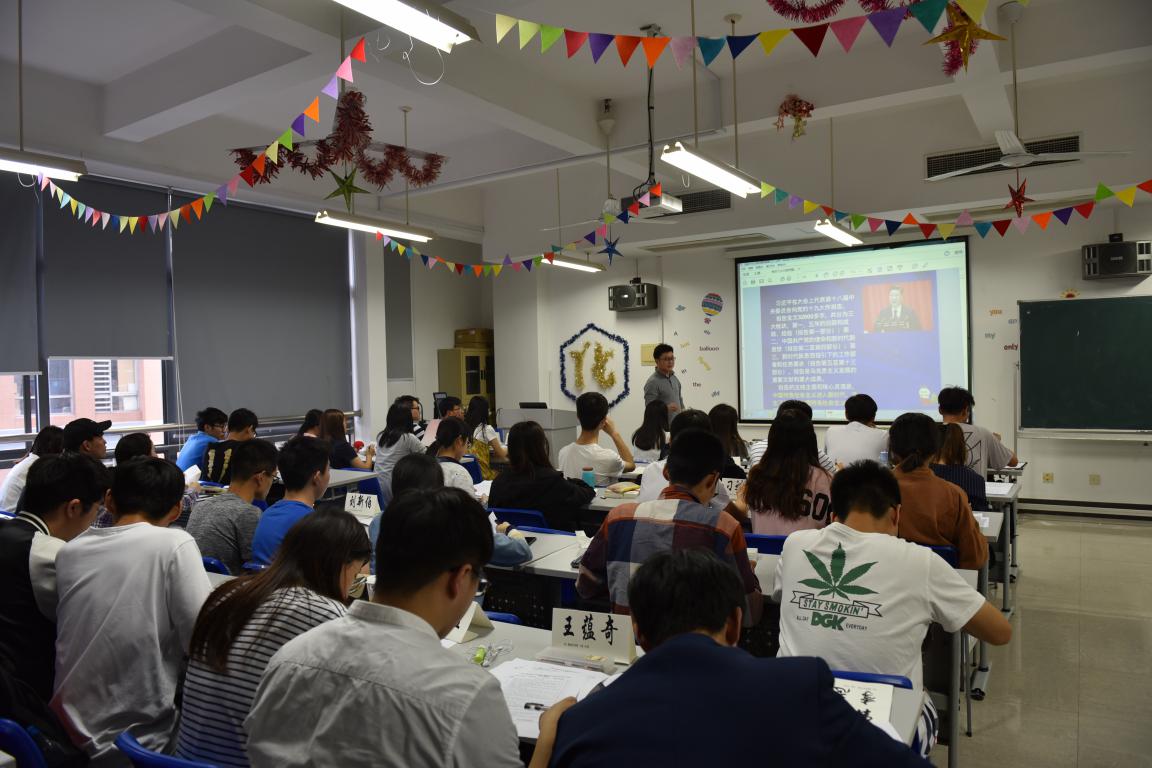 5月24日下午6:00,上海工程技术大学第14期预备党员培训班第七课在实训中心4405开讲,社会科学学院副教授马可作了“十九大精神讲解党性”的专题讲座,来自电子电气工程学院、化学化工学院和管理学院三个学院的全体预备党员聆听了党课。