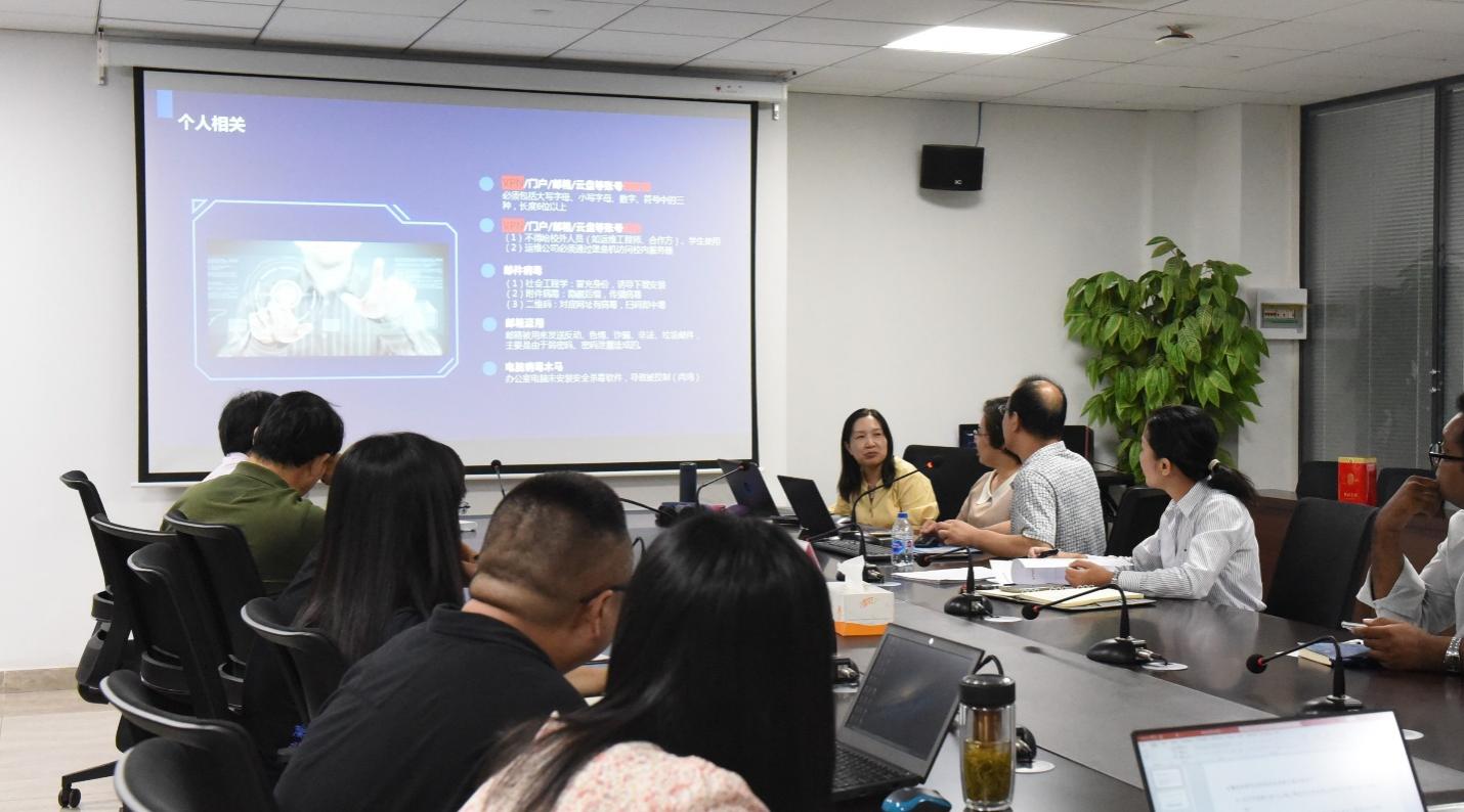 10月8日下午,信息化办公室夏永祥老师受邀来到学院开展以网络安全为主题的专题交流宣讲会。宣讲会在现代交通中心大楼7950会议室举行,学院党委书记范君晖书记、刘瑾副院长、赵晓丽副院长出席了本次会议,各系室负责人、科研团队负责人、教学团队负责人和近三年新进教师参加了本次会议。