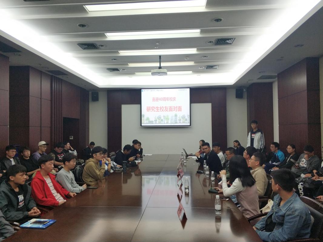 随后,五位校友与同学们进行深入互动交流,对于同学们提出的考研相关问题给予悉心解答。活动结束后,五位校友为我校即将到来的四十周年校庆送上了自己的真挚祝福。