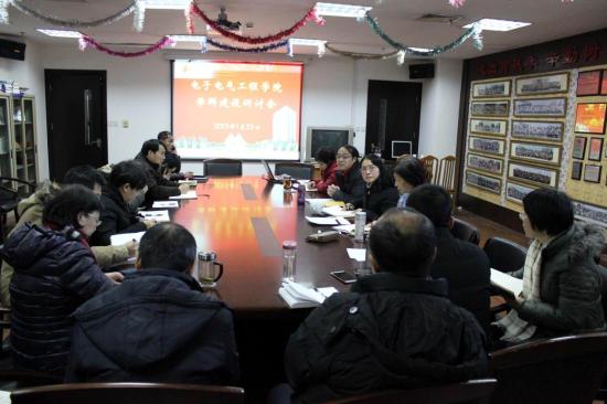 1月25日上午,电气学院在行政楼912室召开会议研讨学科建设。学院领导班子,系主任和教授代表参加了会议。