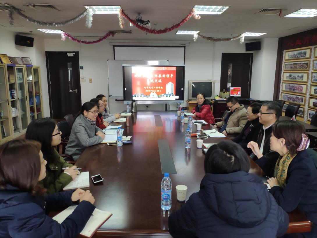2月28日,东方国际集团党委干部部王嵘部长、人力资源部总经理、干部部副部长杨斌、信息管理部总经理袁炜、干部部副部长、人力资源部副总经理胡明丽一行在服装学院党委书记、东方国际集团中央研究院智能纺织研究所所长袁蓉副教授、服装学院党委副书记谢志霞的陪同下,到电子电气工程学院进行交流访问、洽谈深度合作事宜,受到电子电气工程学院党委书记段海霞、党委副书记秦颖的热情接待,电气学院计算机系系主任刘翔等专业教师代表、就业辅导员等参加了交流会。
