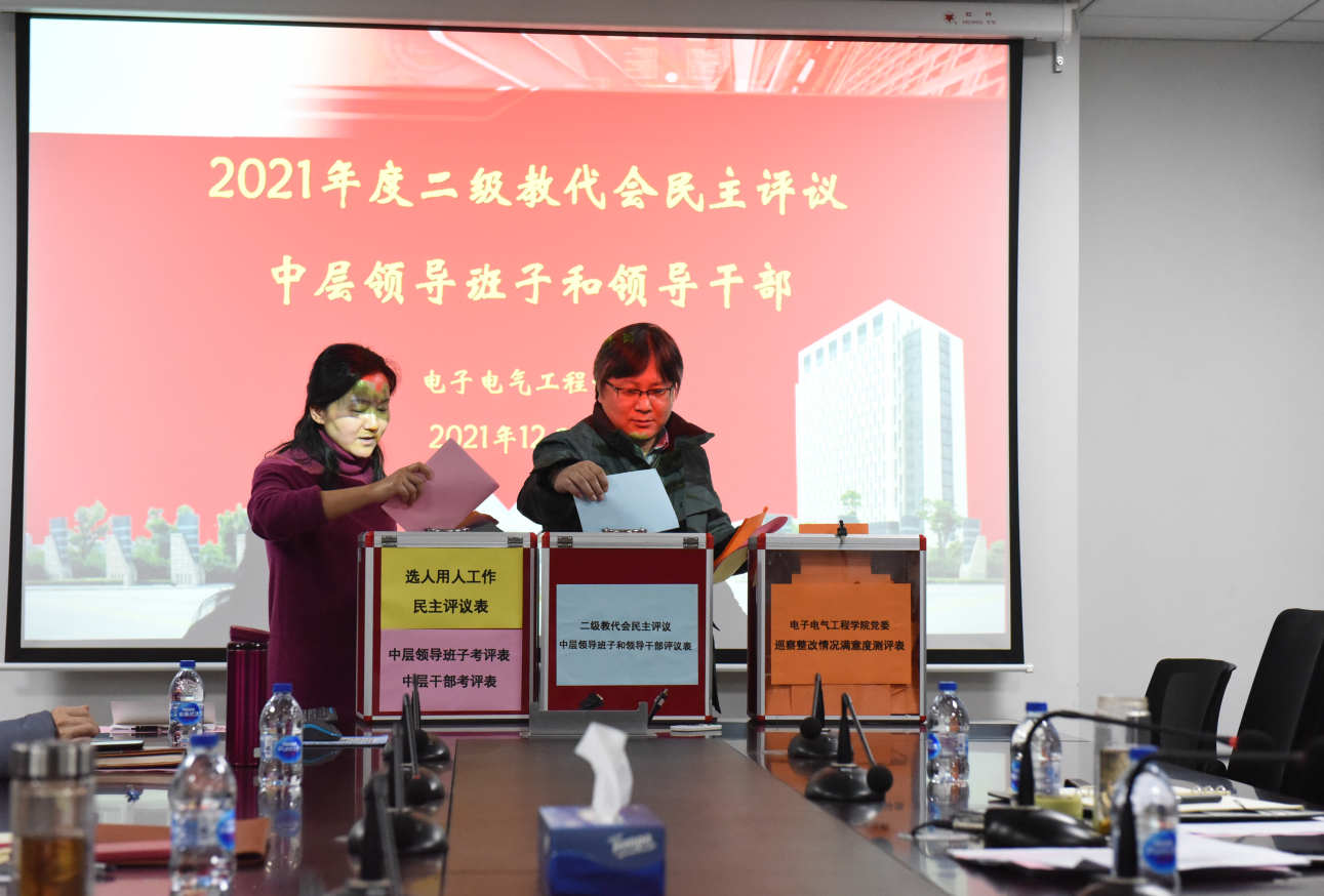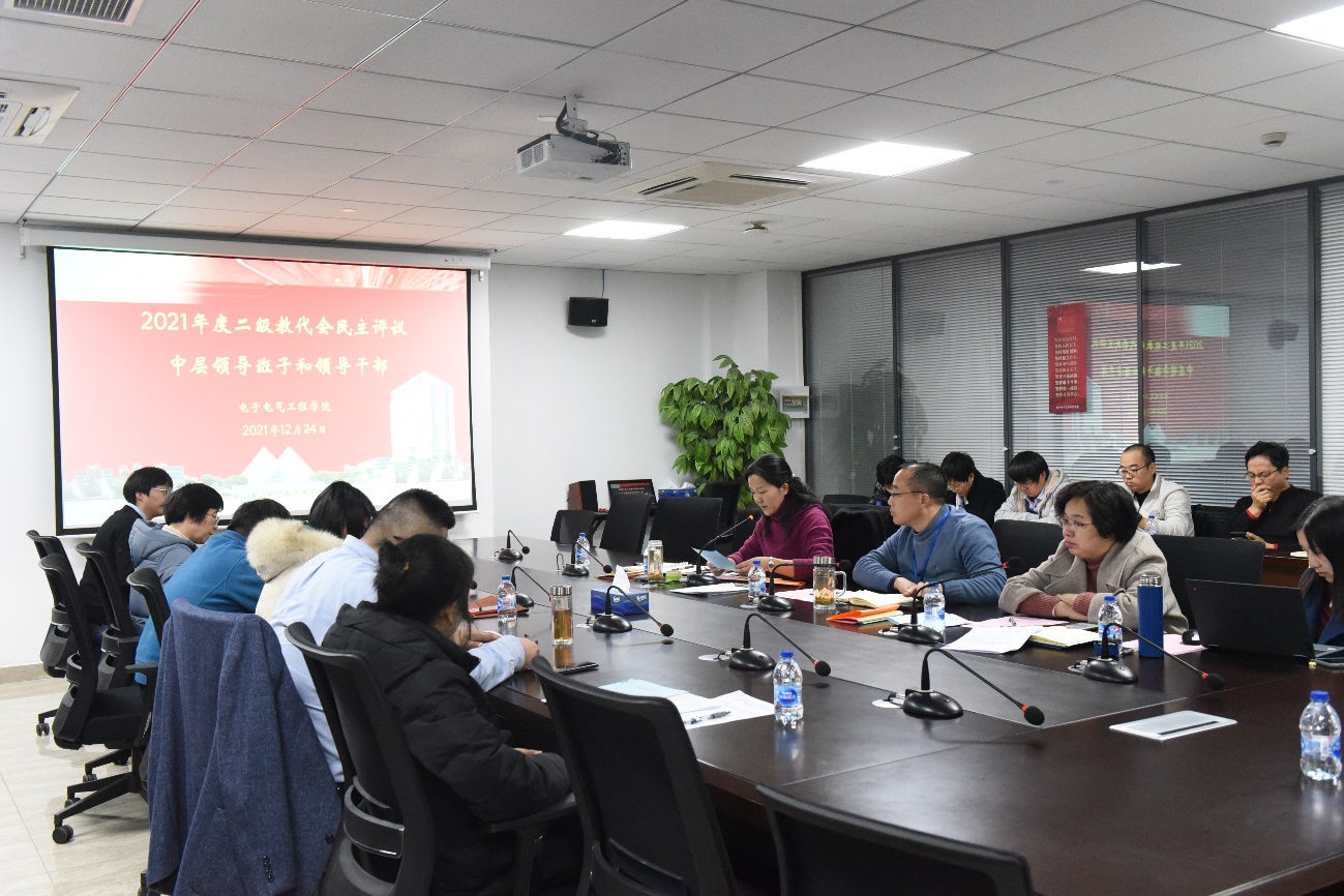 为进一步加强我校中层领导班子和中层干部队伍管理,持续推进高素质专业化干部队伍建设,发挥年度考核的激励、约束和监督作用,根据学校中层领导班子和中层干部考核的有关要求,12月24日下午,学院在现代交通工程中心7950室召开2021年度中层领导班子及中层干部考核民主测评及二级教代会民主评议会。学院领导班子、党委委员、工会主席、各系室负责人、党支部书记、校、院党代会代表、校、院教代会代表、学生代表等共同出席测评会。会议由学院党委书记范君晖主持。