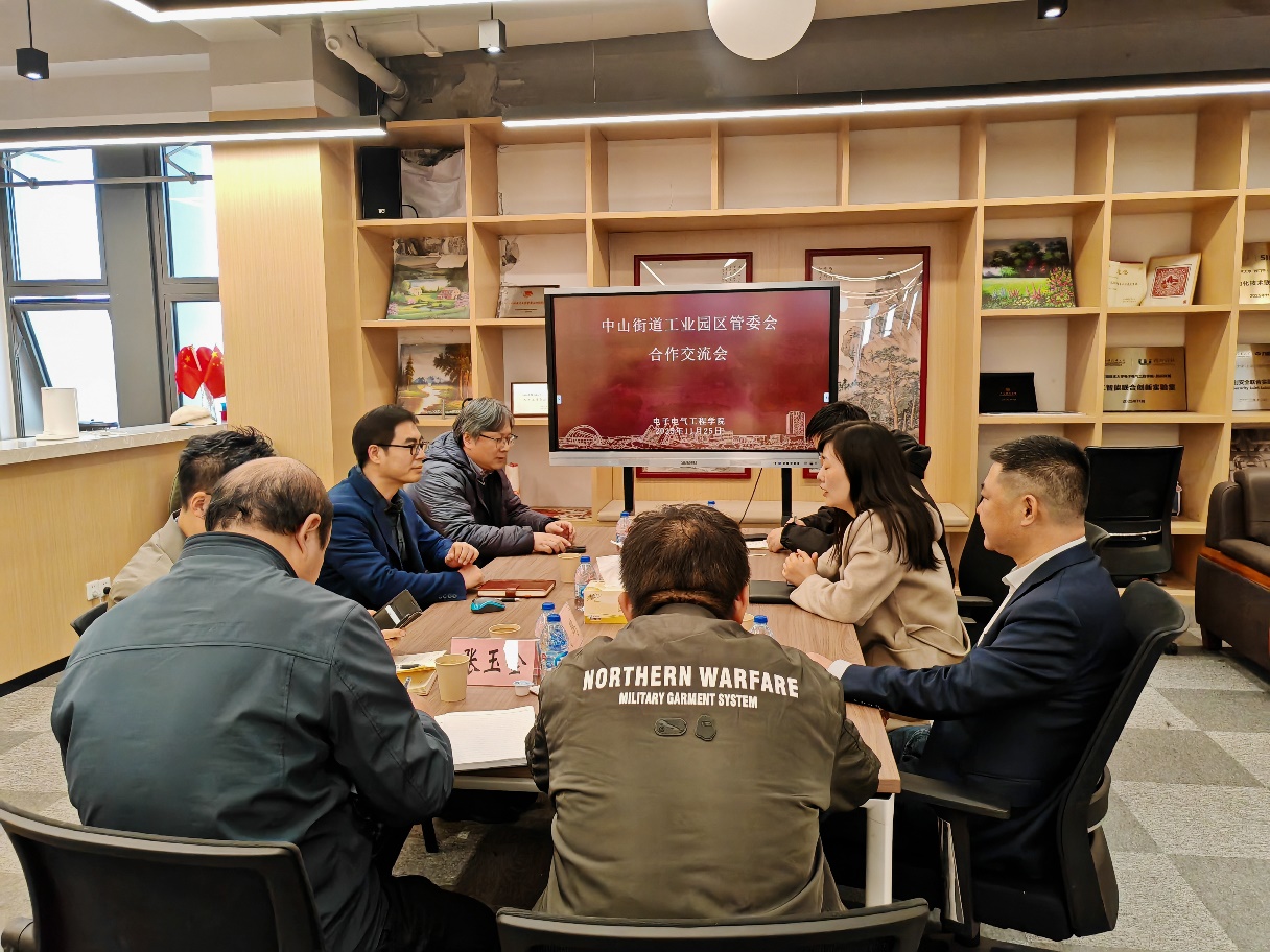 为深入贯彻落实区域化党建联建工作要求,深化地校合作机制,促进资源共享与优势互补,11月25日下午,上海茸北工业经济发展有限公司常务副总经理、中山街道工业区街区党支部书记张樱,中建·幸孚+公寓项目经理张宇驰,海尔集团战略发展部上海产业发展总经理公维富来电子电气工程学院开展合作交流活动。学院党委书记王成涛,教学副院长王晓军,党委委员武鹏,中山街道跟岗锻炼教师张玉金,学院团委书记张彬共同参与交流。