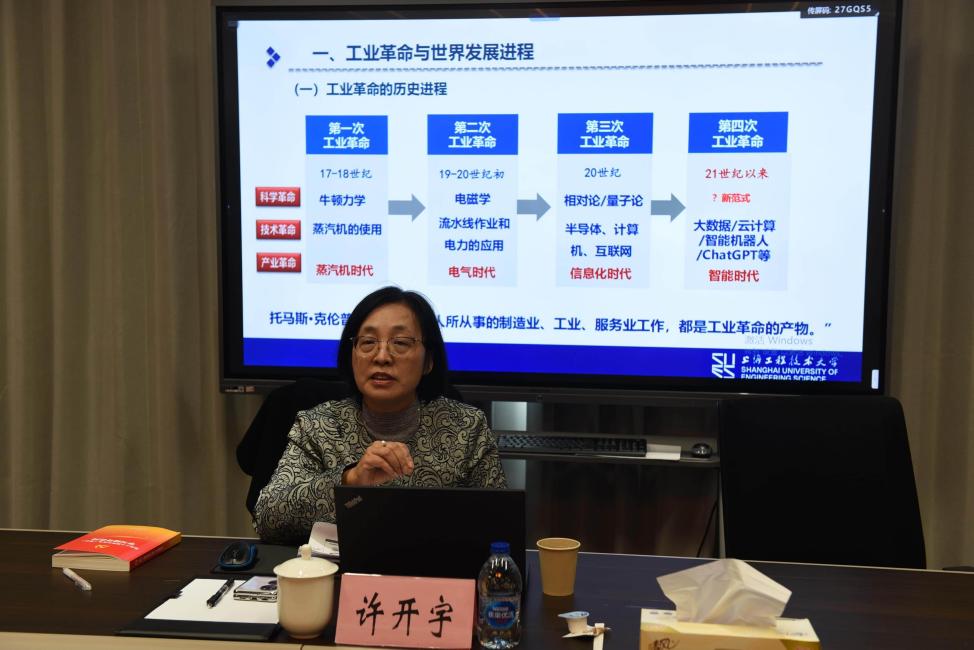 许开宇副校长以时间为主轴,梳理四次工业革命脉络,阐释各阶段技术突破、理论支撑与社会影响,强调“科学与技术交叉推动”是共同规律,回顾了中国工业探索历程,从洋务运动错失机遇,到新中国建立工业体系,再到改革开放后跨越式发展,如今中国工业与科技成就显著。同时,说明了当前中国面临的技术、贸易等挑战,结合党的二十大与“新质生产力”要求,强调教育、科技、人才的支撑作用,提出高校需创新模式培养高素质人才。最后鼓励师生党员要深入思考新时代所需的技术与人才标准,立足自身岗位,在学习与工作中锤炼本领、勇于创新,既要传承中华优秀传统文化,也要勇担科技自立自强的时代使命,为学校建设产业特色、世界一流的应用创新型大学,为国家从“制造大国”迈向“制造强国”贡献智慧与力量。