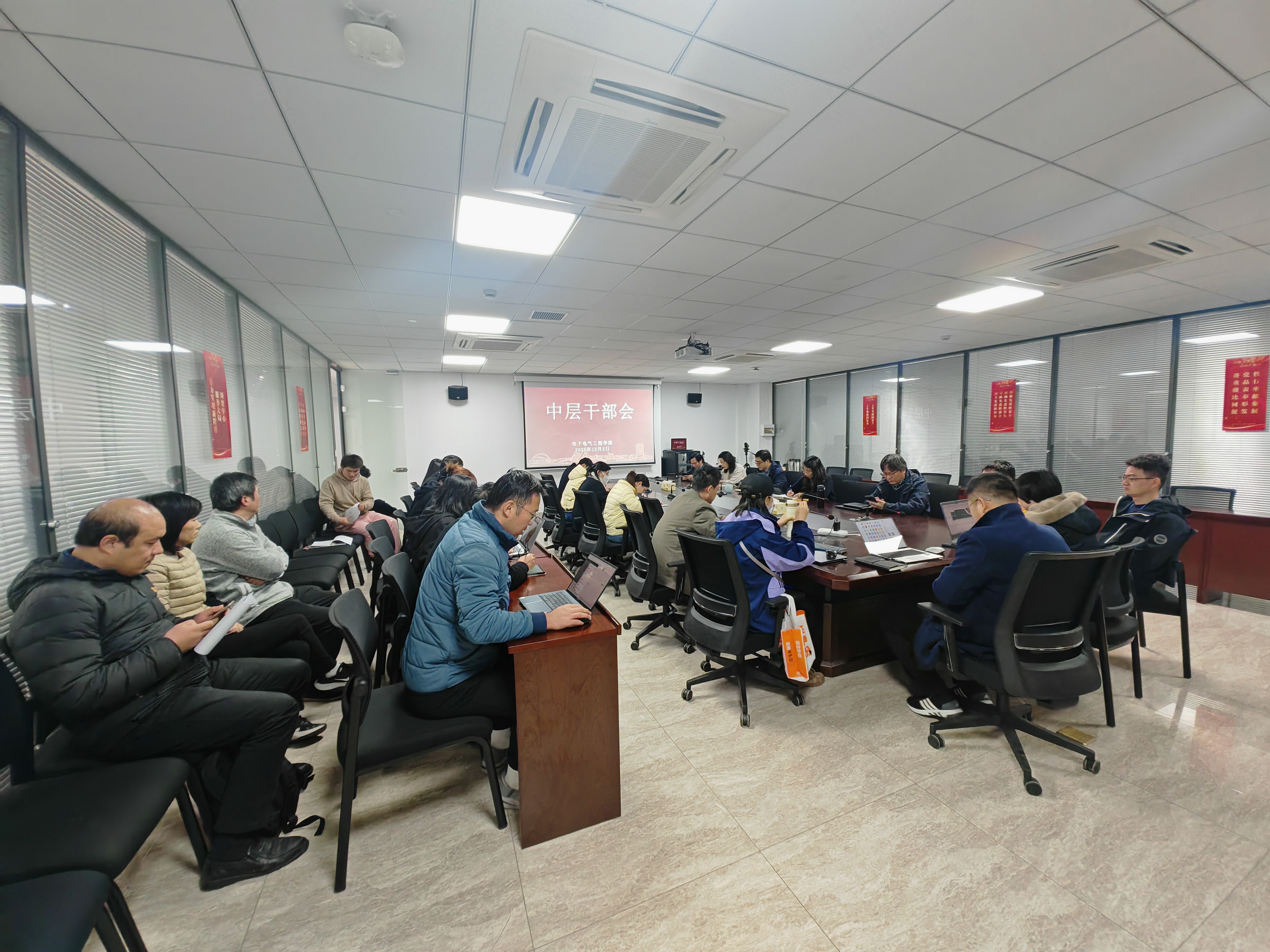 12月2日下午,学院在现代交通工程中心7950室召开学院中层干部会议。会议由学院党委书记王成涛主持,学院党委委员、党政领导、中层干部参加会议。