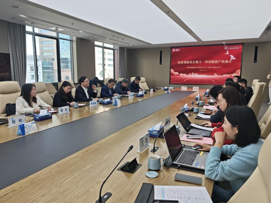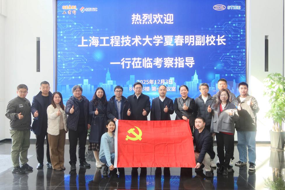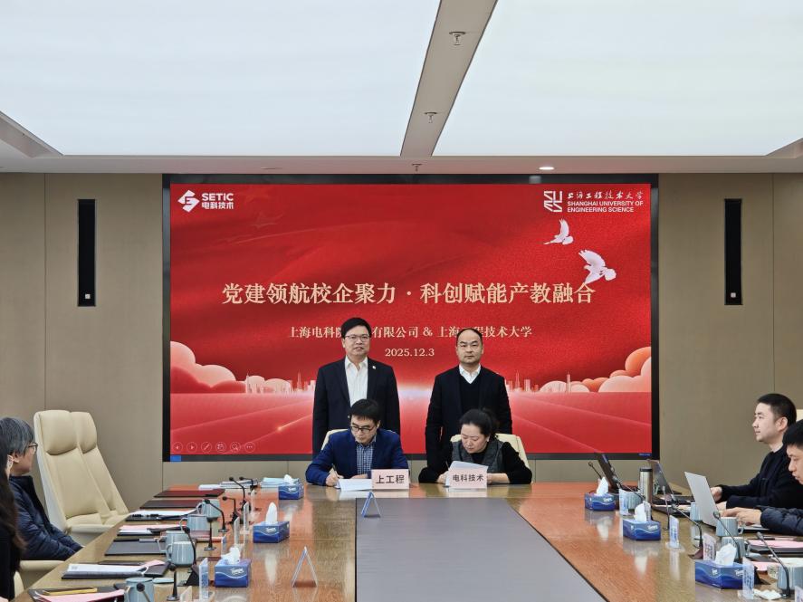 2025年12月3日上午,上海工程技术大学副校长夏春明率队赴上海电科院技术有限公司走访调研,双方围绕党建共建、产学研合作、人才培养等方面展开深入交流,并成功举行党建共建签约仪式。活动在位于普陀区武宁路505号的上海电科集团园区举行。电科集团对上海工程技术大学代表团的到访表示热烈欢迎。电科技术副总裁李新强、总裁助理兼电科院院长周洪发、党委书记兼人力资源部副部长郝鹏,以及检测分院、智慧电能事业部、人力中心等相关负责人出席交流。上海工程技术大学电子电气工程学院党委书记王成涛、院长李媛媛、副院长王晓军及自动化系、学办等部门负责同志共同参与调研。