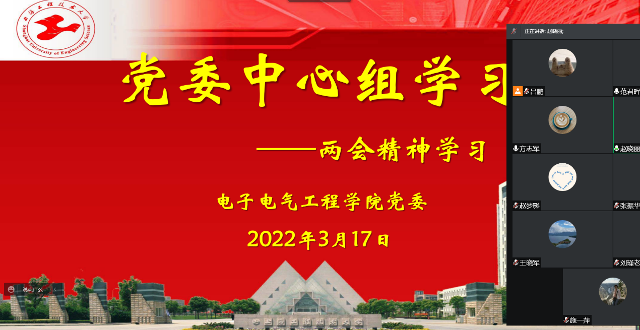 近日,我院党委采用线上方式召开专题学习会学习2022年全国“两会”精神,学院党委中心组全体成员、工会主席和党委组织员参加学习会,会议由学院党委书记范君晖主持。