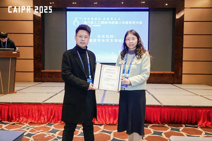 随后,李院长作为分论坛主持人,与参会人员共同聆听了来自辽宁工程技术大学、安徽工程大学、阜阳师范大学、北华航天工业学院等高校五位专家的精彩汇报。专家们针对人工智能在医疗实践、医疗器械的创新应用和科研成果进行了全面阐述。会间,为鼓励学术创新,李院长依次为优秀报告学者颁发证书。这不仅是对学者研究内容的肯定,也向更多青年才俊展示了人工智能领域对创新人才的重视与激励。