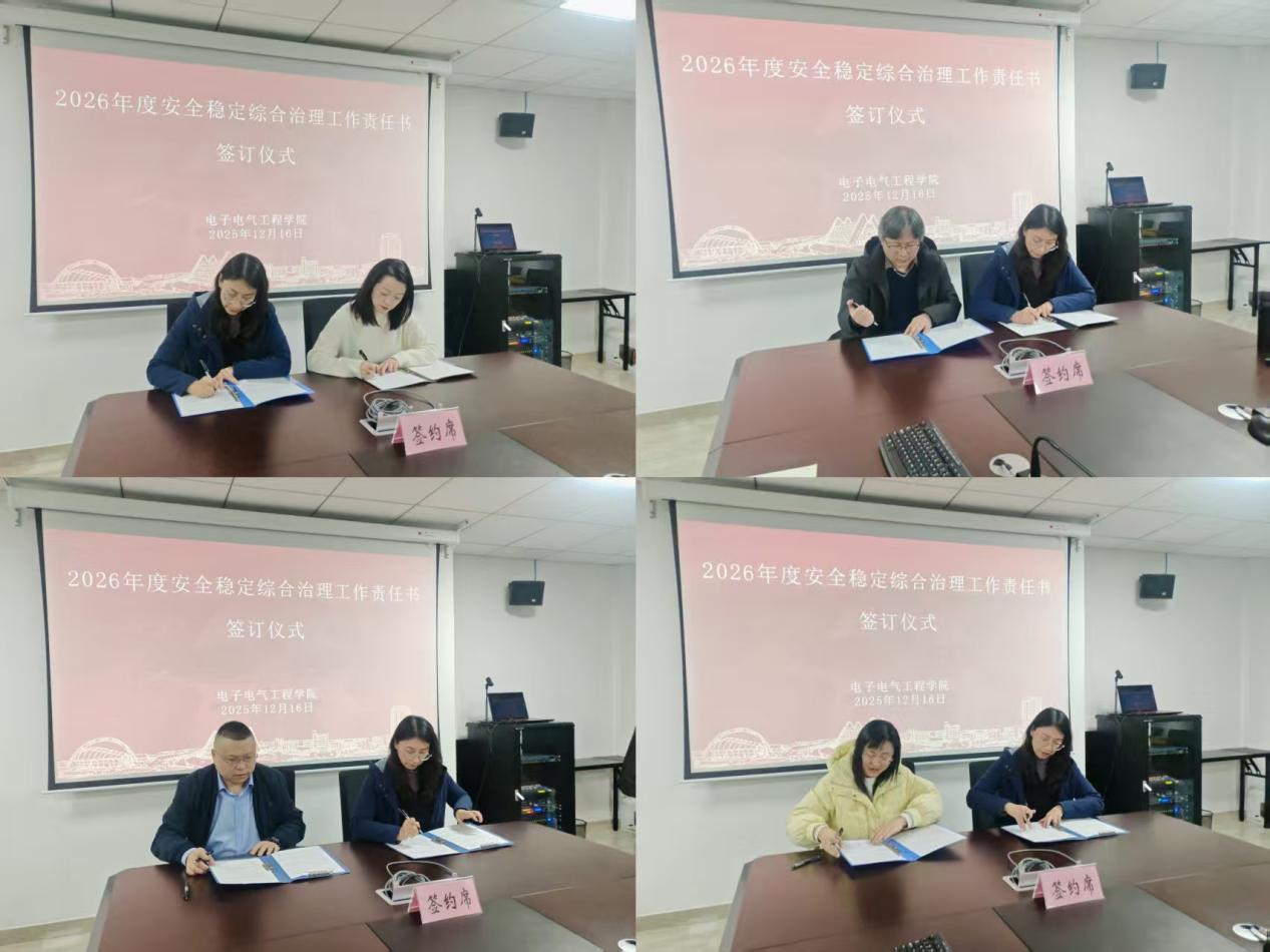 为深入贯彻落实学校关于安全稳定工作的重要决策部署,进一步压实安全责任,筑牢校园安全防线,确保 2026 年学院各项工作平稳有序开展,12 月 16 日,学院在现代交通工程中心 7950 会议室隆重举行 2026 年安全稳定综合治理工作(三级)责任签约仪式。学院党委书记王成涛、党委副书记、院长李媛媛、党委副书记赵梦影、副院长王晓军出席会议,各系室(中心)负责人作为责任签约方全程参与。